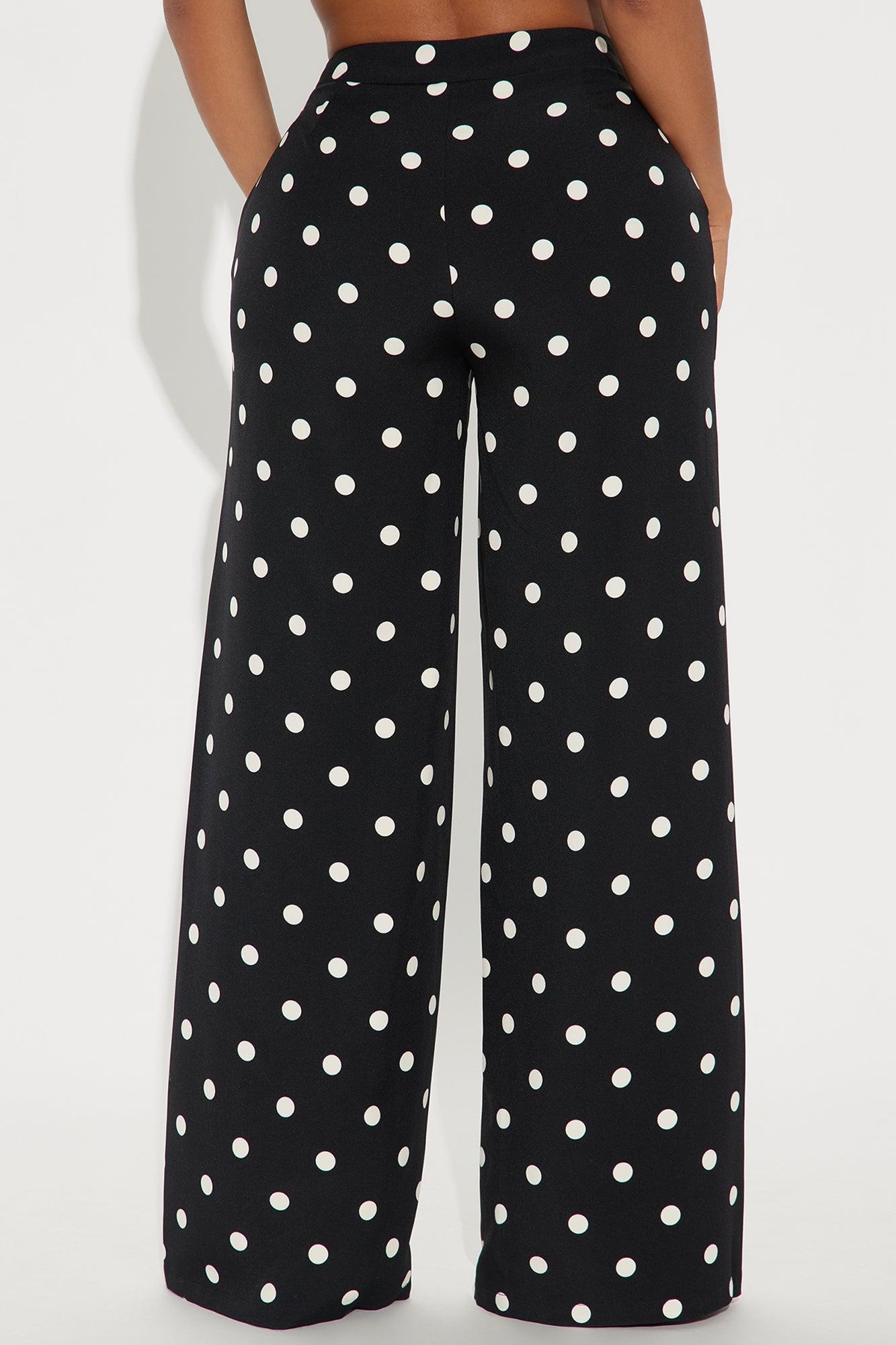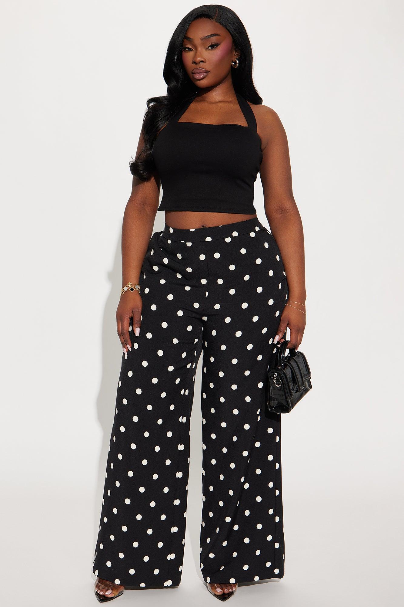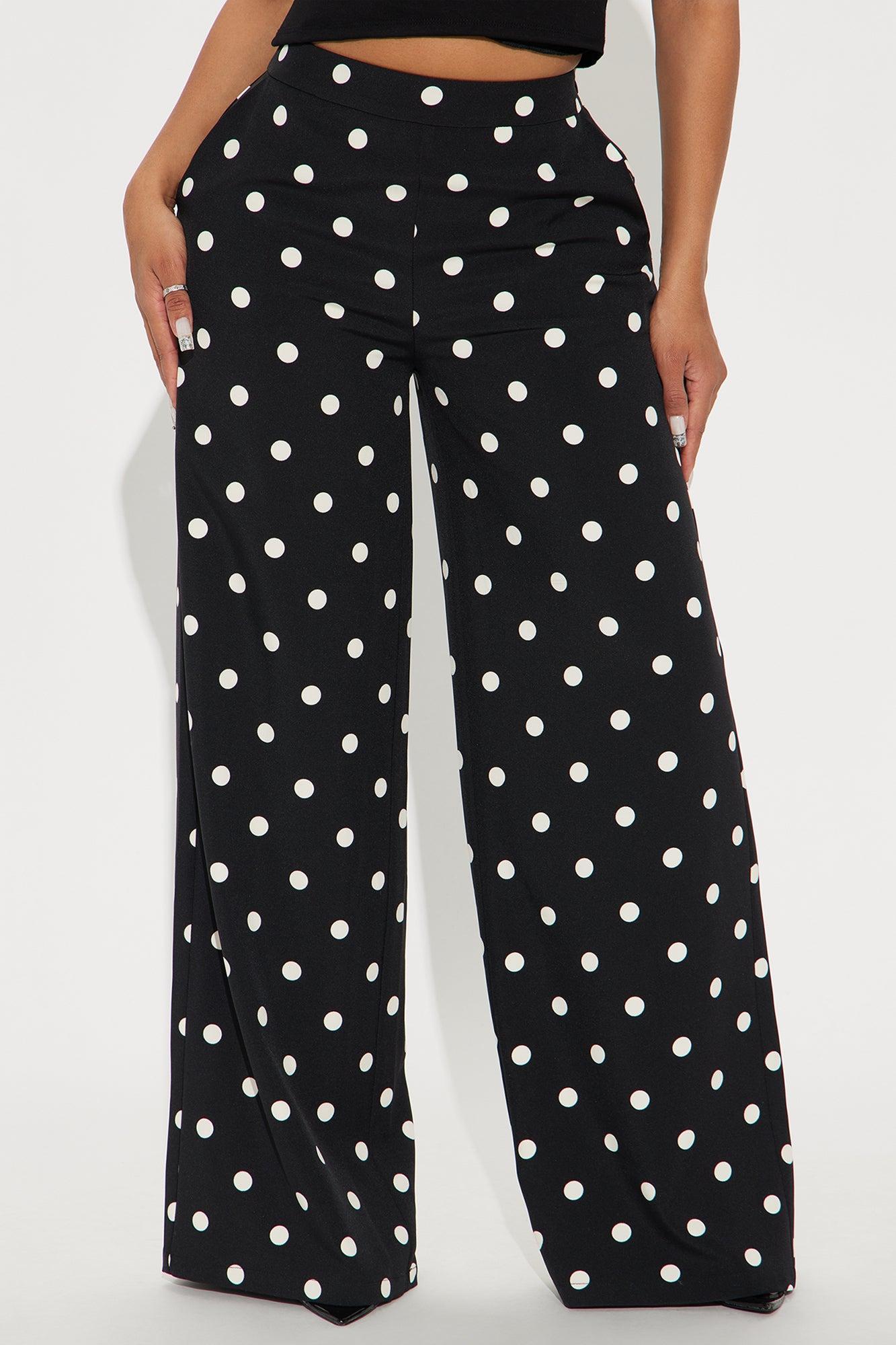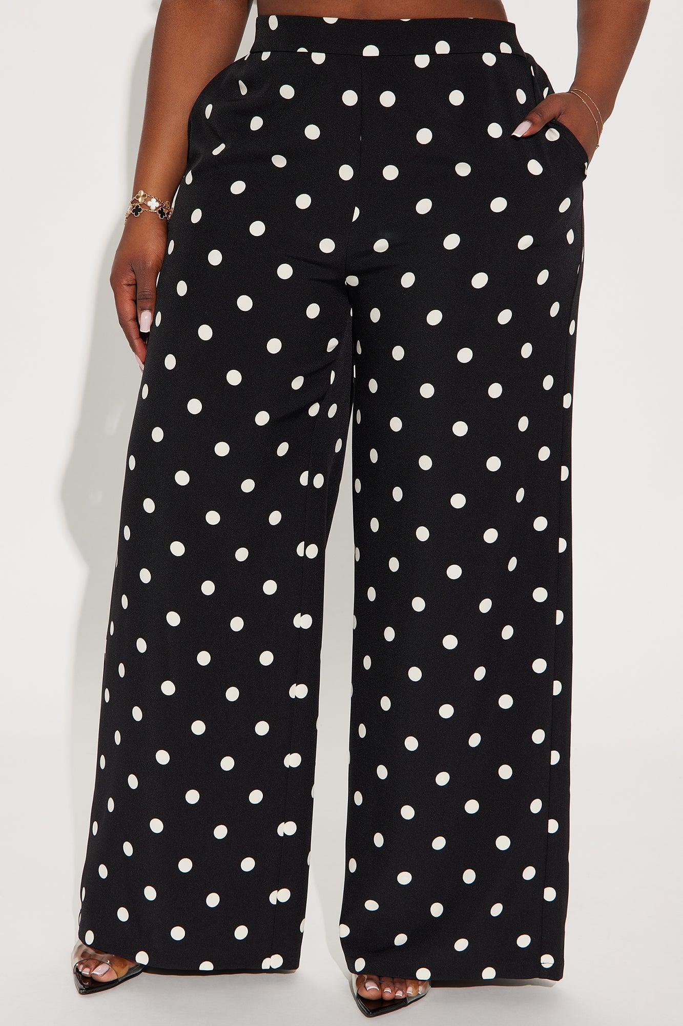 Available In Black/White And Cream/combo. Trouser Pant High Rise Hook & Eye Closure Side Zip Polka Dot Wide Leg Non Stretch 32" Inseam Disclaimer: Print Placement Will Vary Self 97 % Polyester 3% Spandex Lining 100% Polyester Imported California Proposition 65WARNING: Cancer and Reproductive Harm - www.P65Warnings.ca.gov.