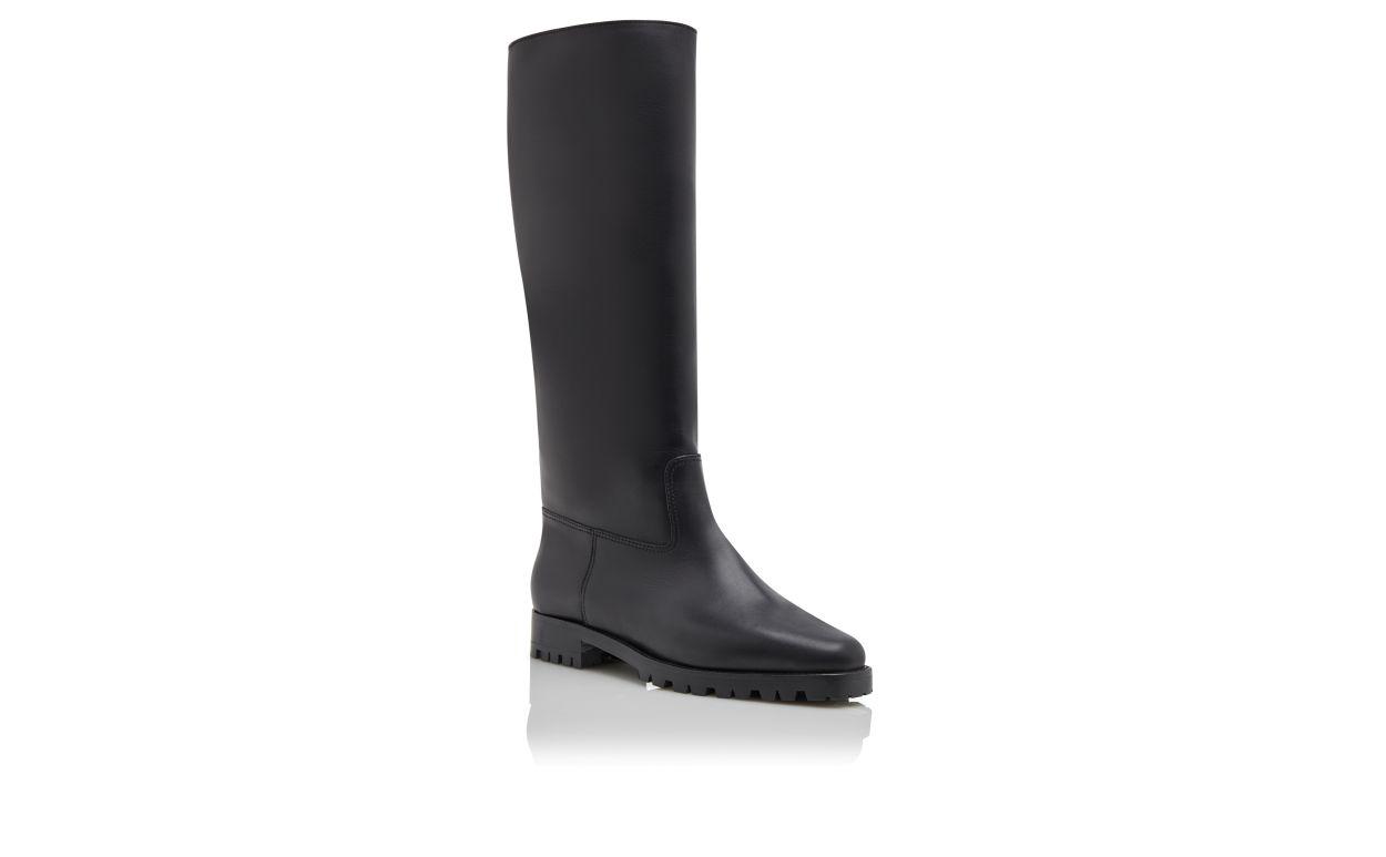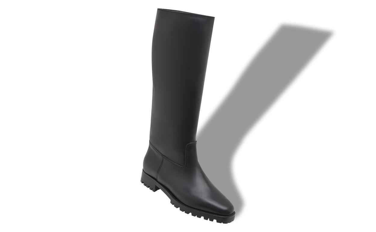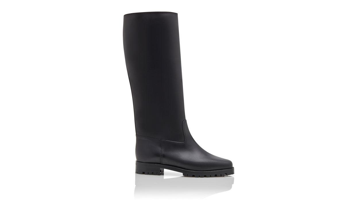 LUCHINO Black Calf Leather Knee High Boots