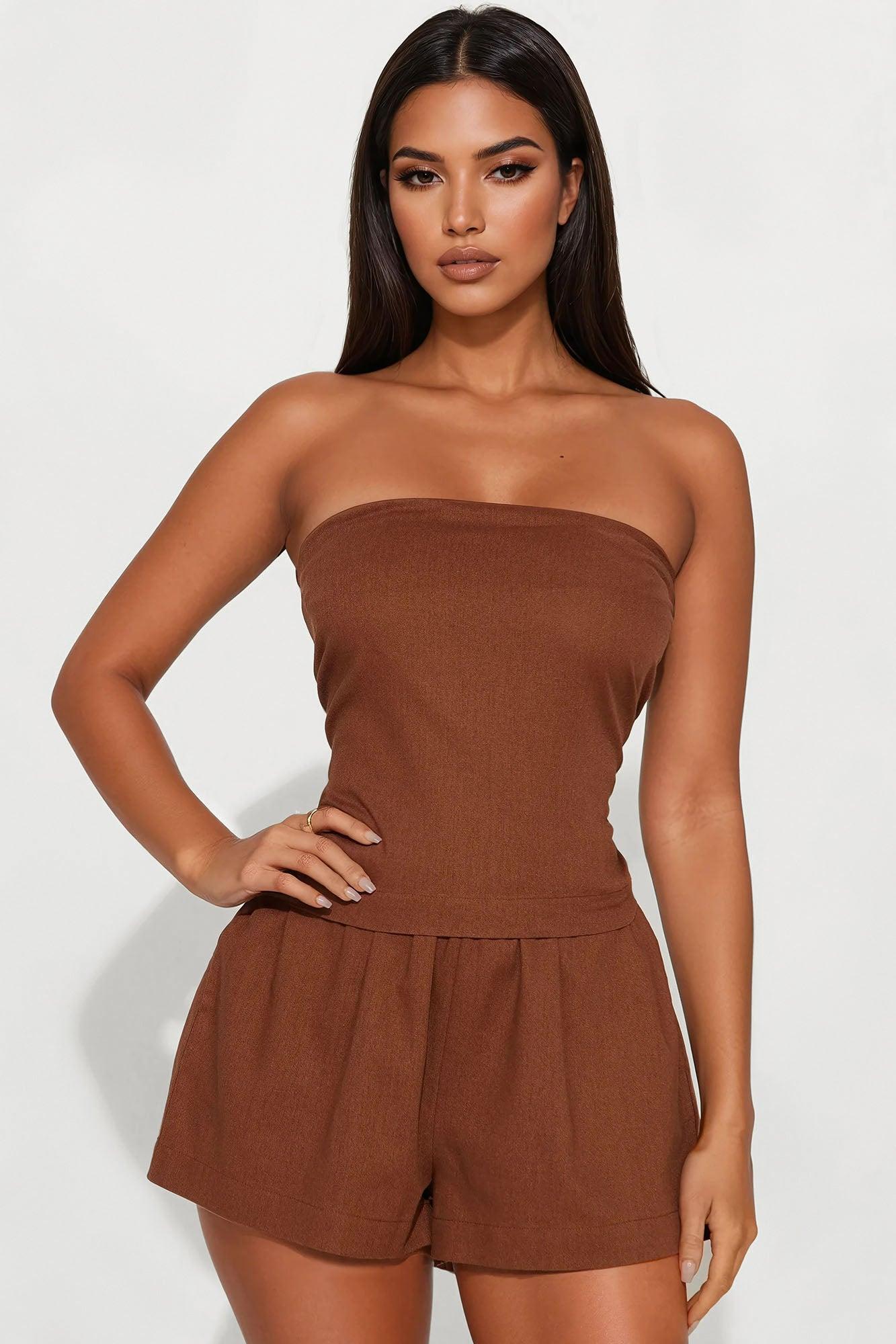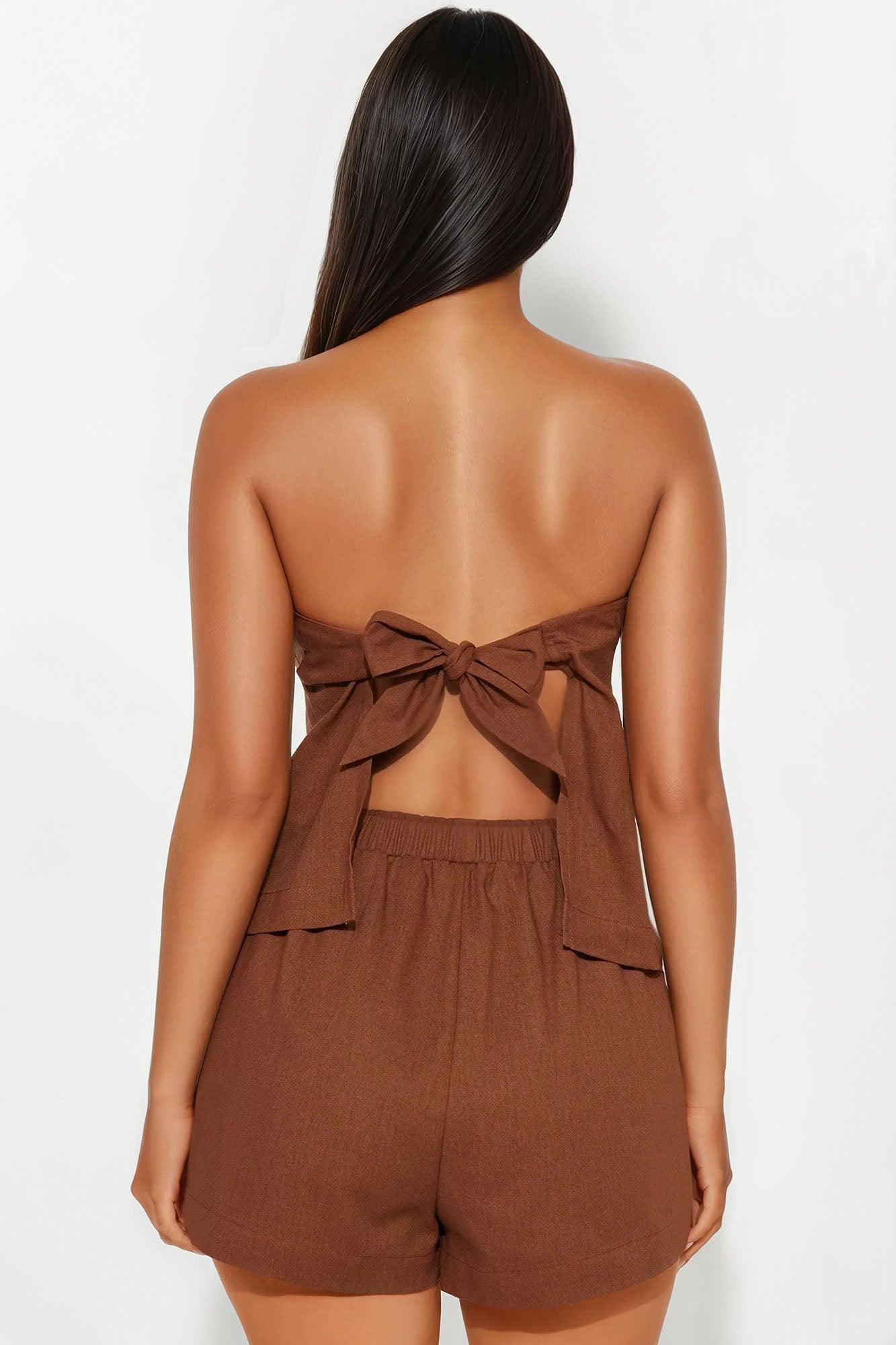 Lucia Linen Strapless Short Set - Brown
