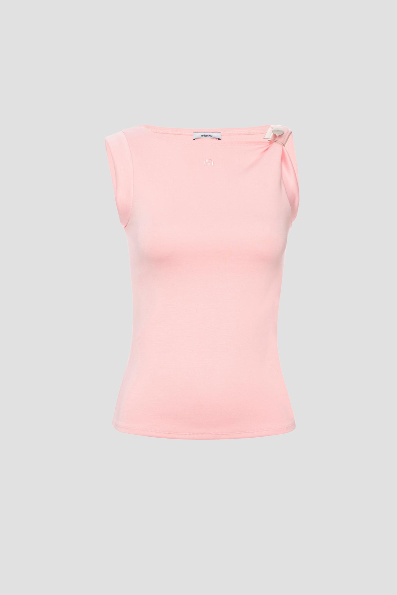 The Lucia Top in Peony - with a little extra hardware. She features a chic snap-button PVC closure on the shoulder. Made in our newest fabric, Scuba Jersey.