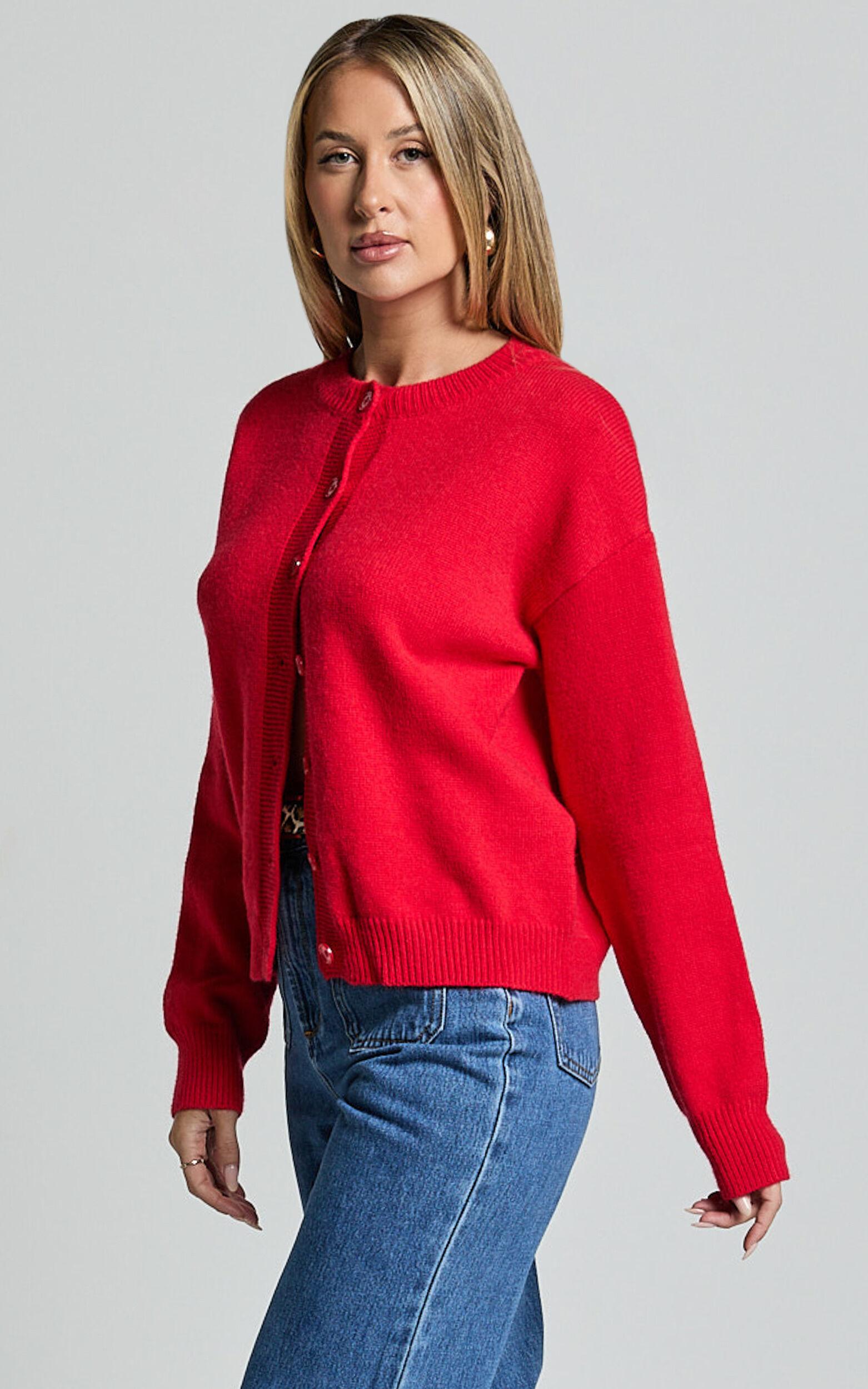 In a stunning shade of red, this scoop-neck cardigan channels nostalgic Y2K vibes with its fitted silhouette, button-front style, and minimalist charm. Whether you're heading to brunch or embracing cool-girl street style, its versatility opens up endless outfit possibilities.Wear the Lucille Cardigan casually unbuttoned over a cropped tank and high-waisted jeans for an effortless off-duty model look inspired by current runway trends. Or elevate your weekend style by pairing it with a silky slip skirt and bold accessories for an Instagram-worthy outfit. Once again, this standout knit proves that exceptional knitwear is central to every fashion-forward wardrobe.Product Details:Buttons detailCardigan styleKnitwear categoryFully Fashioned KnitCasual useStandard lengthLong SleeveAcrylic material