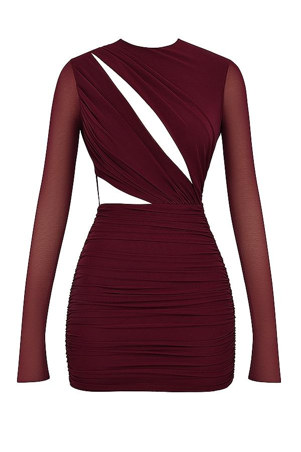 We just love a gathered dress and 'Lucinda' is our pretty mini that beautifully moulds to your body in that figure cinching way that only power mesh can. It's spliced through the chest and waist for a subtle yet sexy glimpse of skin and has long sleeves. It zips to the back for easy on. 'Lucinda' comes in an beautiful Mulberry hue.