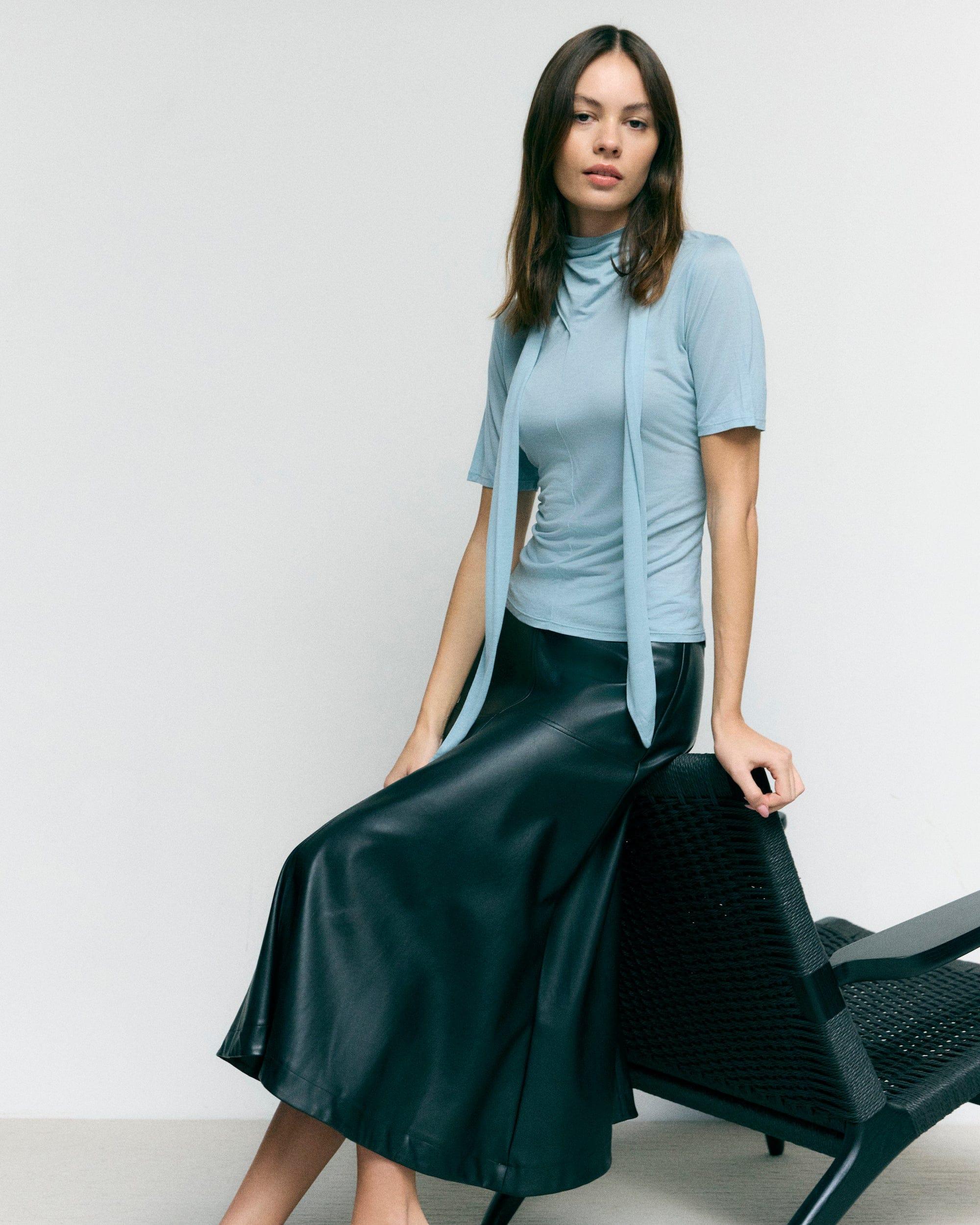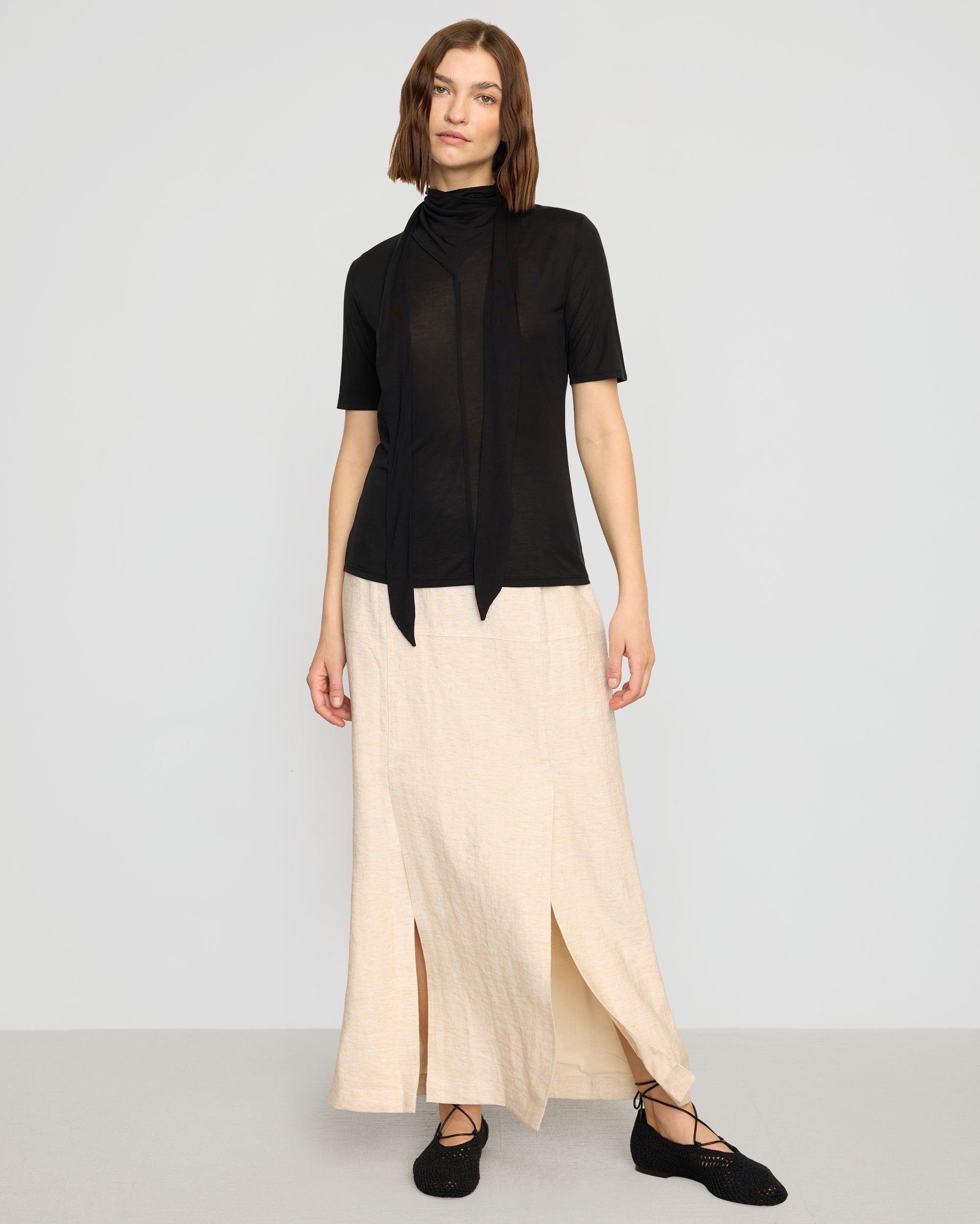 A lightweight semi-sheer tee with a chic scarf-neck detail — Lucine is a modern update to the classic tee and an instant wardrobe staple.