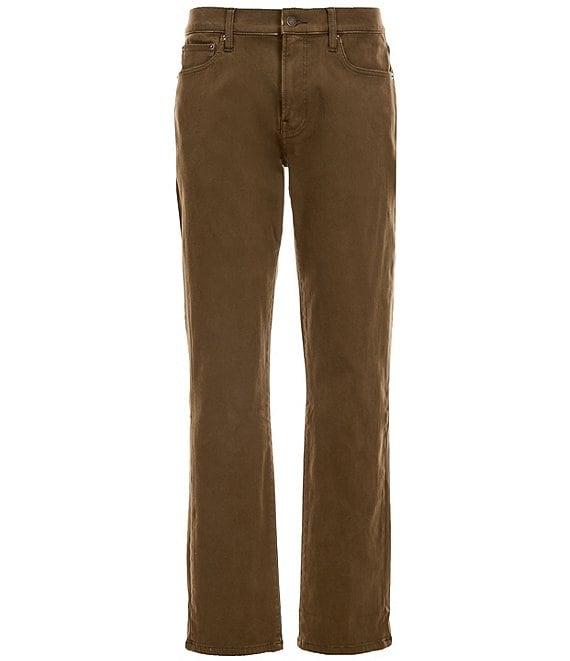 From Lucky Brand, these pants feature: Mid rise Zip/button front closure Belt loops 5-pocket pants 2 front pockets (1 with coin pocket) 2 back pockets Full length Straight legs Super-stretch fabrication for comfortable wear Cotton/polyester/lyocell/elastane twill Machine wash/tumble dry Imported.