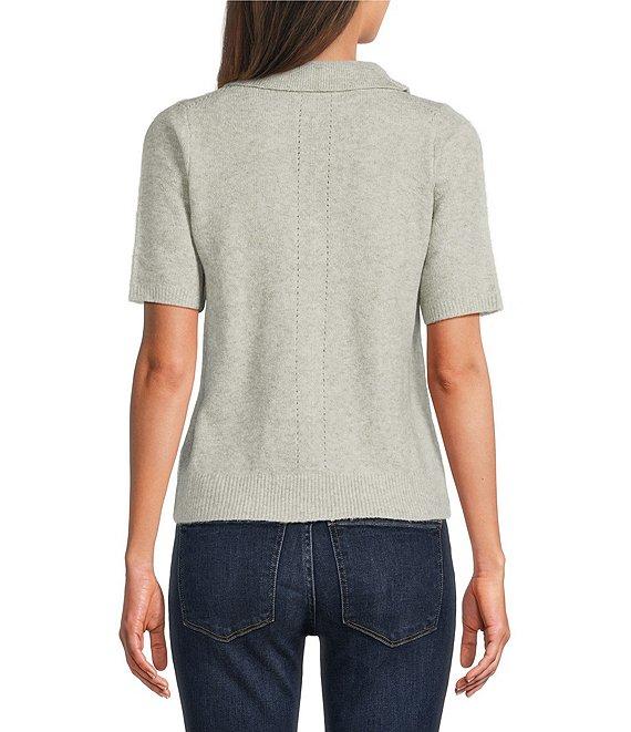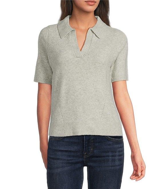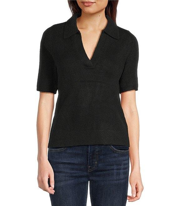 Lucky Brand Cloud Knit Notch V-Neck Short Sleeve Sweater
