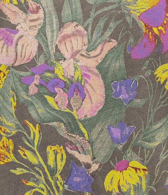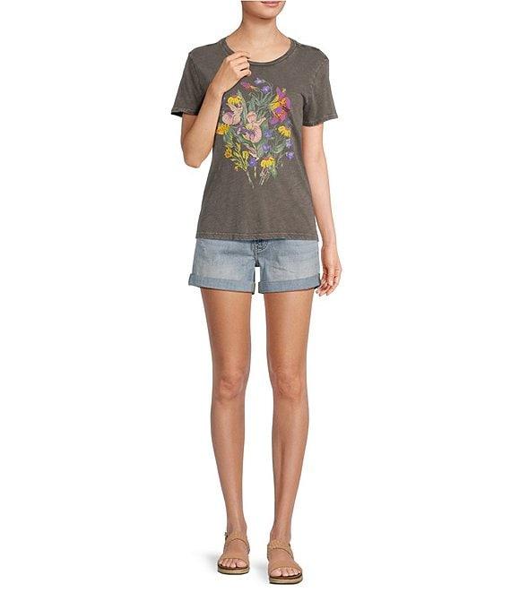 Lucky Brand Graphic Faded Floral Print Crew Neck Short Sleeve Relaxed Fit Tee Shirt