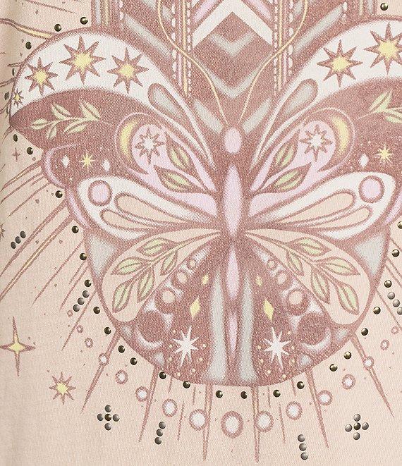 Lucky Brand Knit Butterfly Hamsa Design Crew Neck Short Sleeve Tee