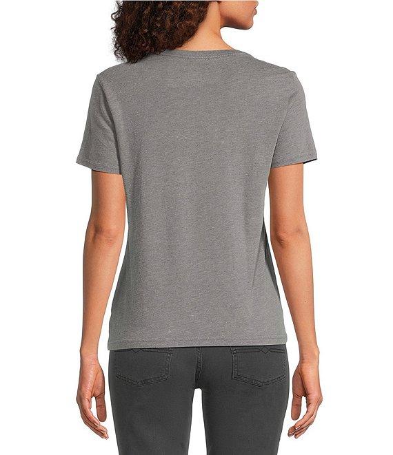 From Lucky Brand, this tee features: Knit fabrication Front floral butterfly motif Crew neckline Short sleeves Ribbed collar Straight hem Pullover construction Approx. 26" length Cotton Machine wash cold Imported.