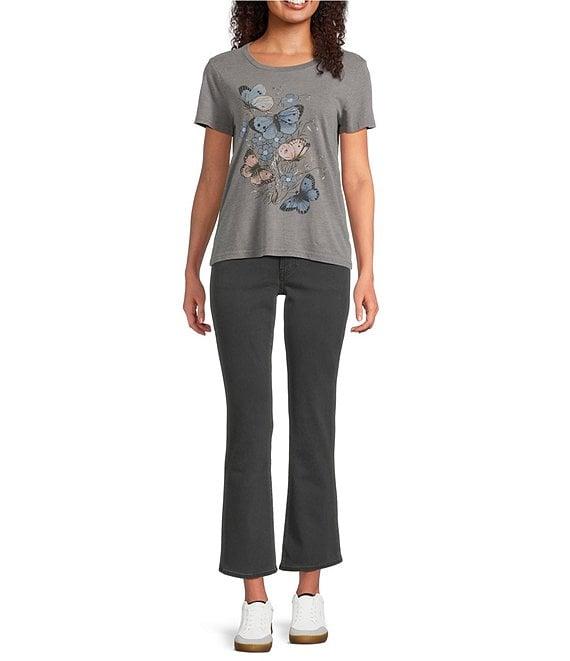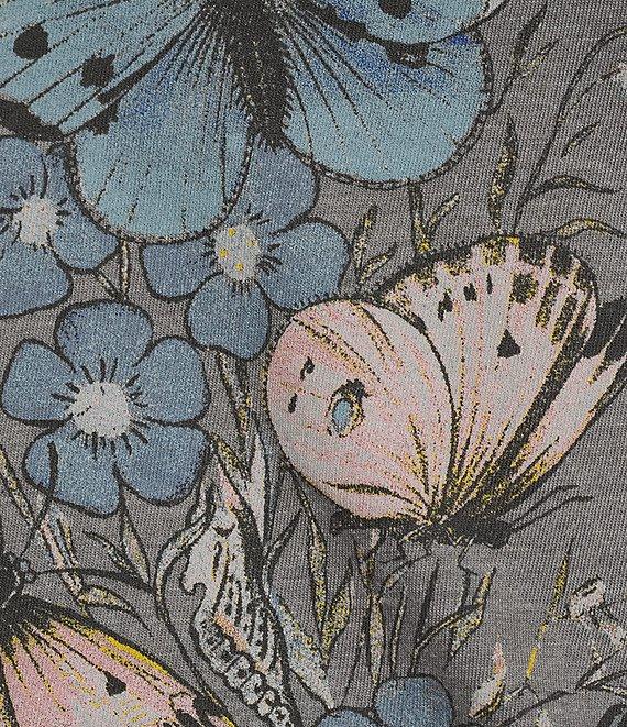 Lucky Brand Knit Front Floral Butterfly Motif Crew Neck Short Sleeve Tee
