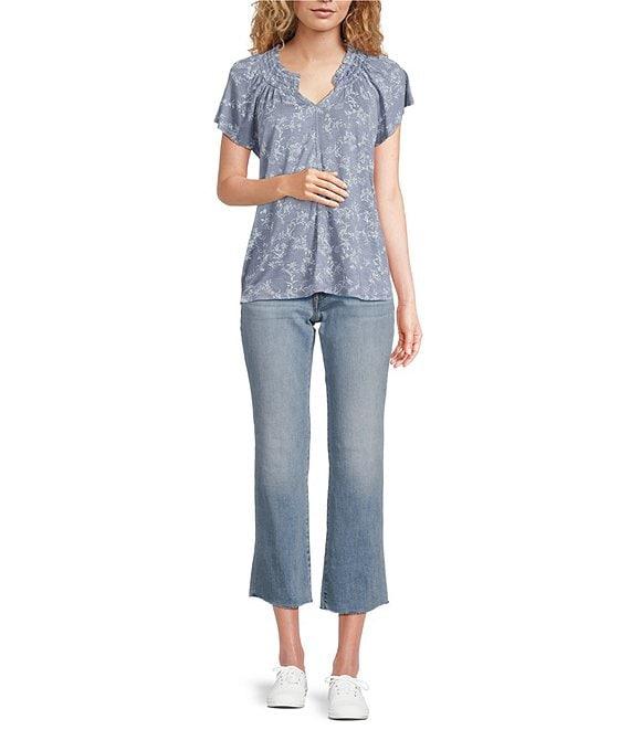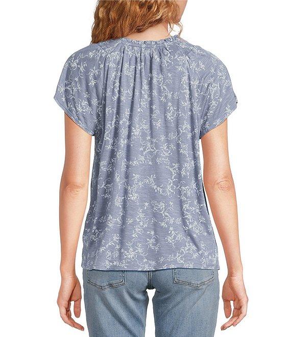 Lucky Brand Knit Printed Notch V-Neck Short Sleeve Top