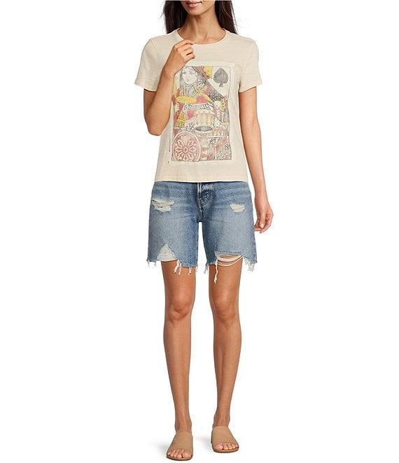Lucky Brand Knit Queen Of Spades Crew Neck Short Sleeve Relaxed Fit Classic Tee