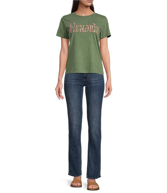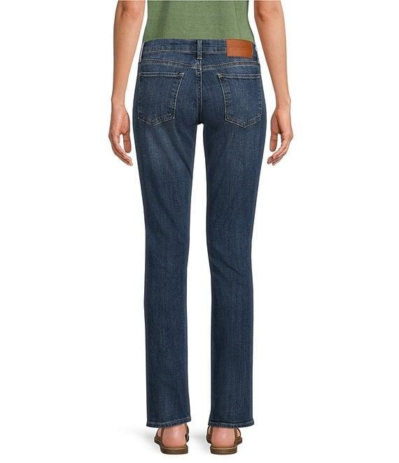 From Lucky Brand, these jeans feature: Stretch denim fabrication Straight leg silhouette Mid rise waistband 5-pocket style Belt loops Button front/zip fly closure Approx. 30" inseam; 8.5" front and back length; 15" leg opening Polyester/elastane/other Machine wash Imported.