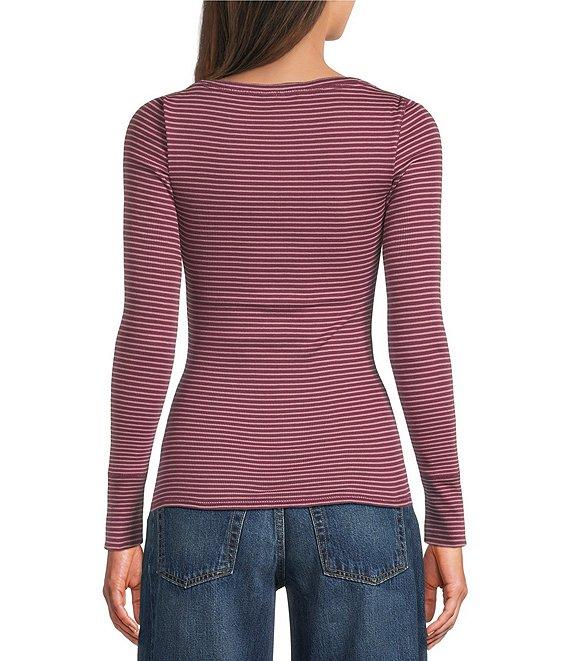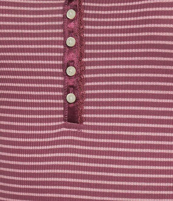 Lucky Brand Striped Ribbed Knit Round Neck Long Sleeve Pointelle Henley Top