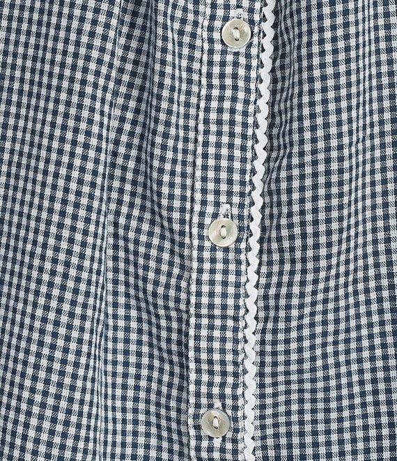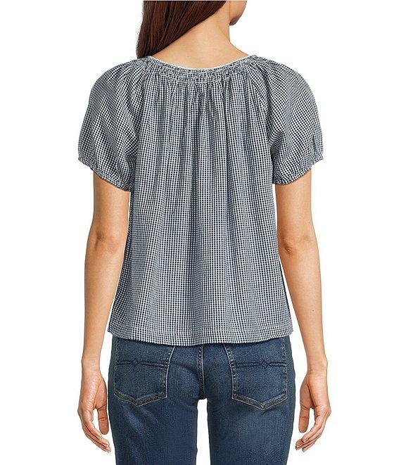 Lucky Brand Woven Gingham Round Neck Short Sleeve Top