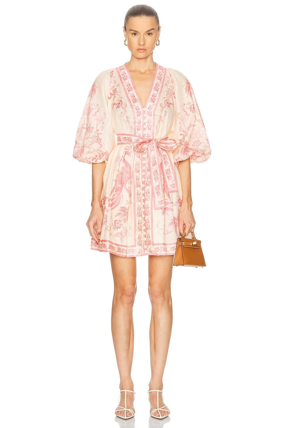 dressSelf: 100% linenLining: 100% cotton / Dry clean only / Partially lined / Hidden back zipper closureFront button loop closure / Tonal self tie-up at waist / Side slit pockets / Elastic stretch at cuffs / Linen fabric / Made in China / Our Style No. ZMER-WD768 / Manufacturer Style No. 3500DSS252 / Model is wearing size 1/S