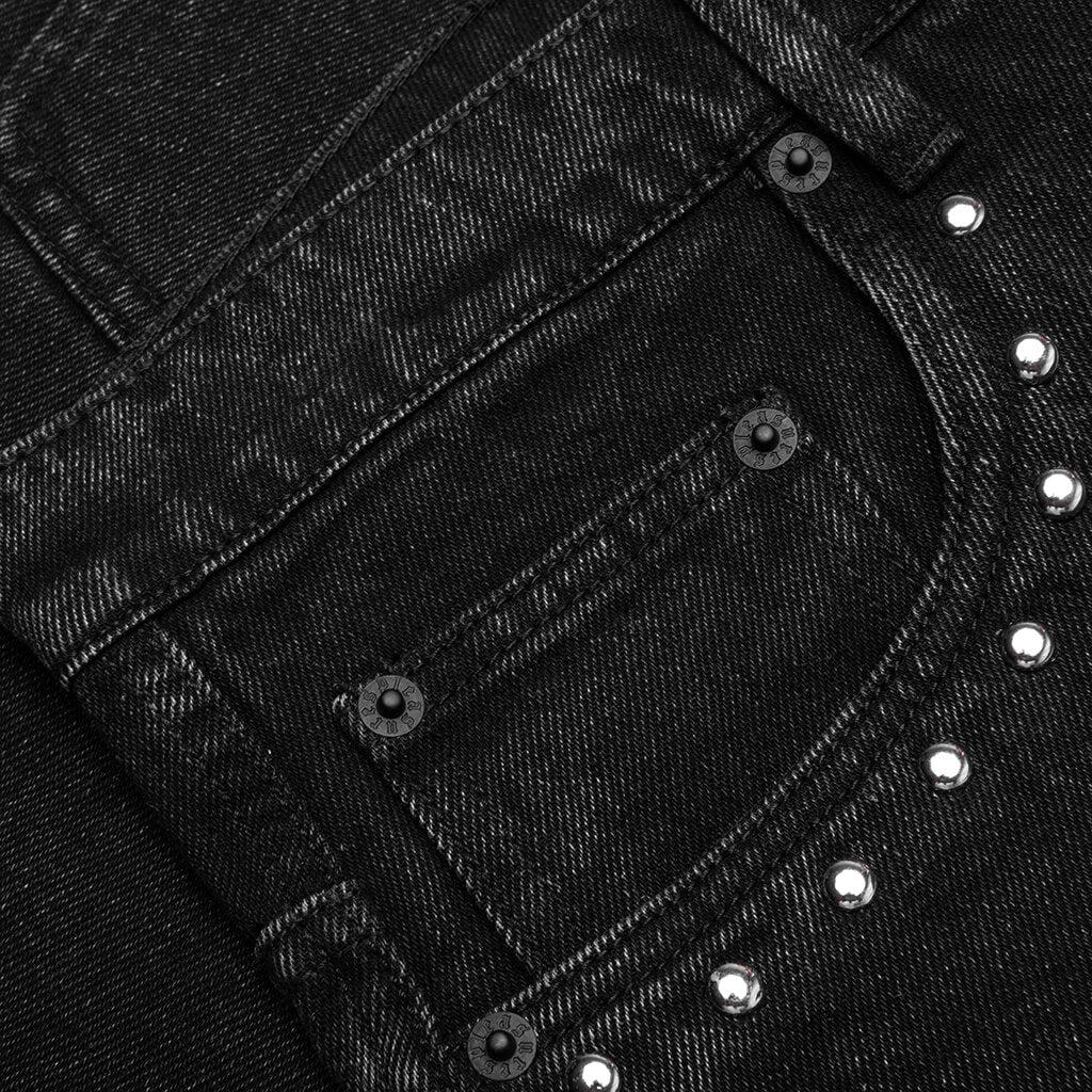 Pleasures pays a tribute to Daft Punk's legacy in their latest collaboration with the Lucky Studded Jorts. Constructed from cotton, the wide leg silhouette features a 5-pocket design and zip-fly with button closure. Studded detailing along the side pockets and outseams add standout shine, while an embroidered Daft Punk logo ties the look together. 100% Cotton, 14 oz Denim Stone and enzyme wash 5-pocket design Wide leg Zip-fly with button closure Studded embellishments Embroidered Daft Punk logo Leather jacron Style No: P25DP005-BLACK P25DP005 BLAC