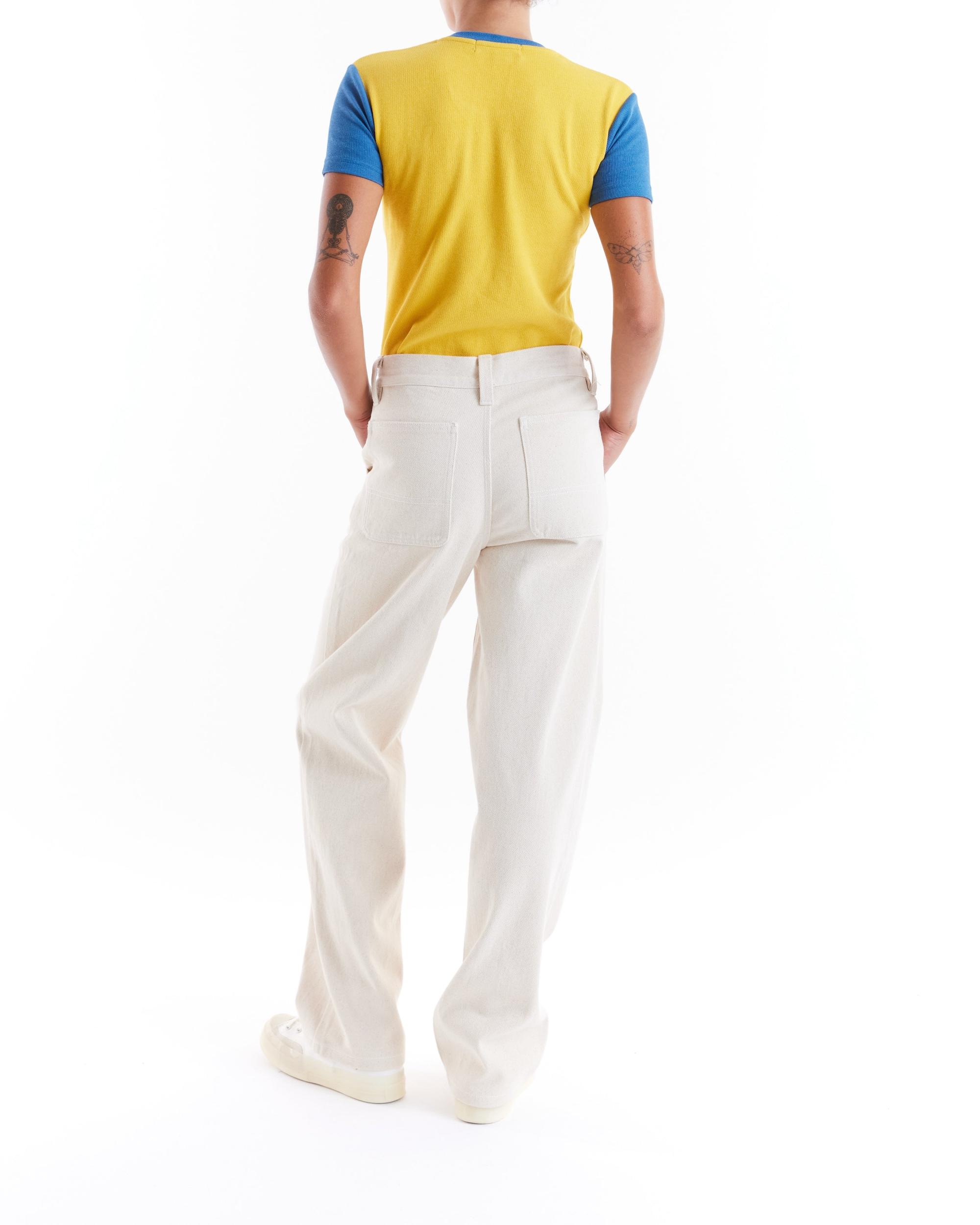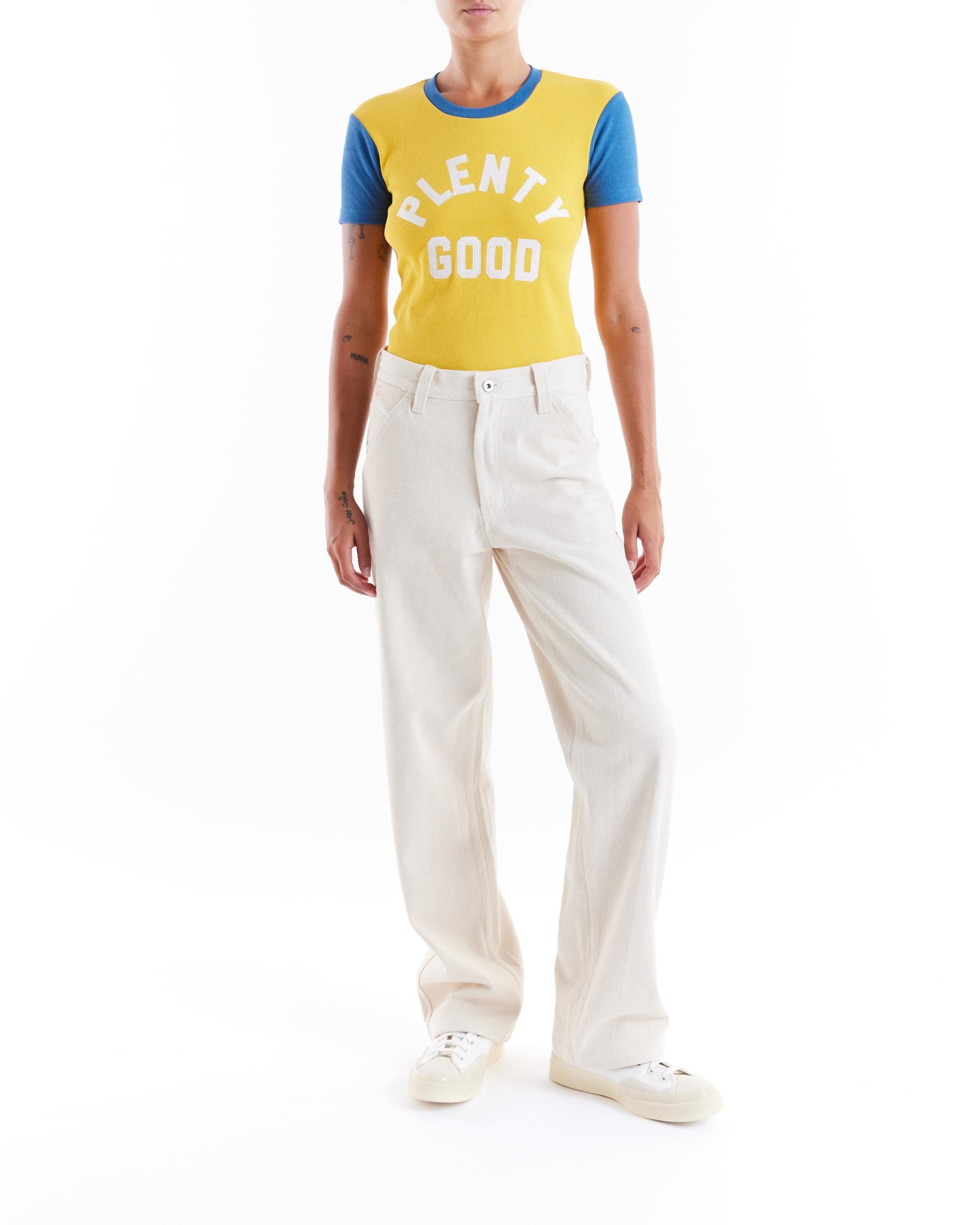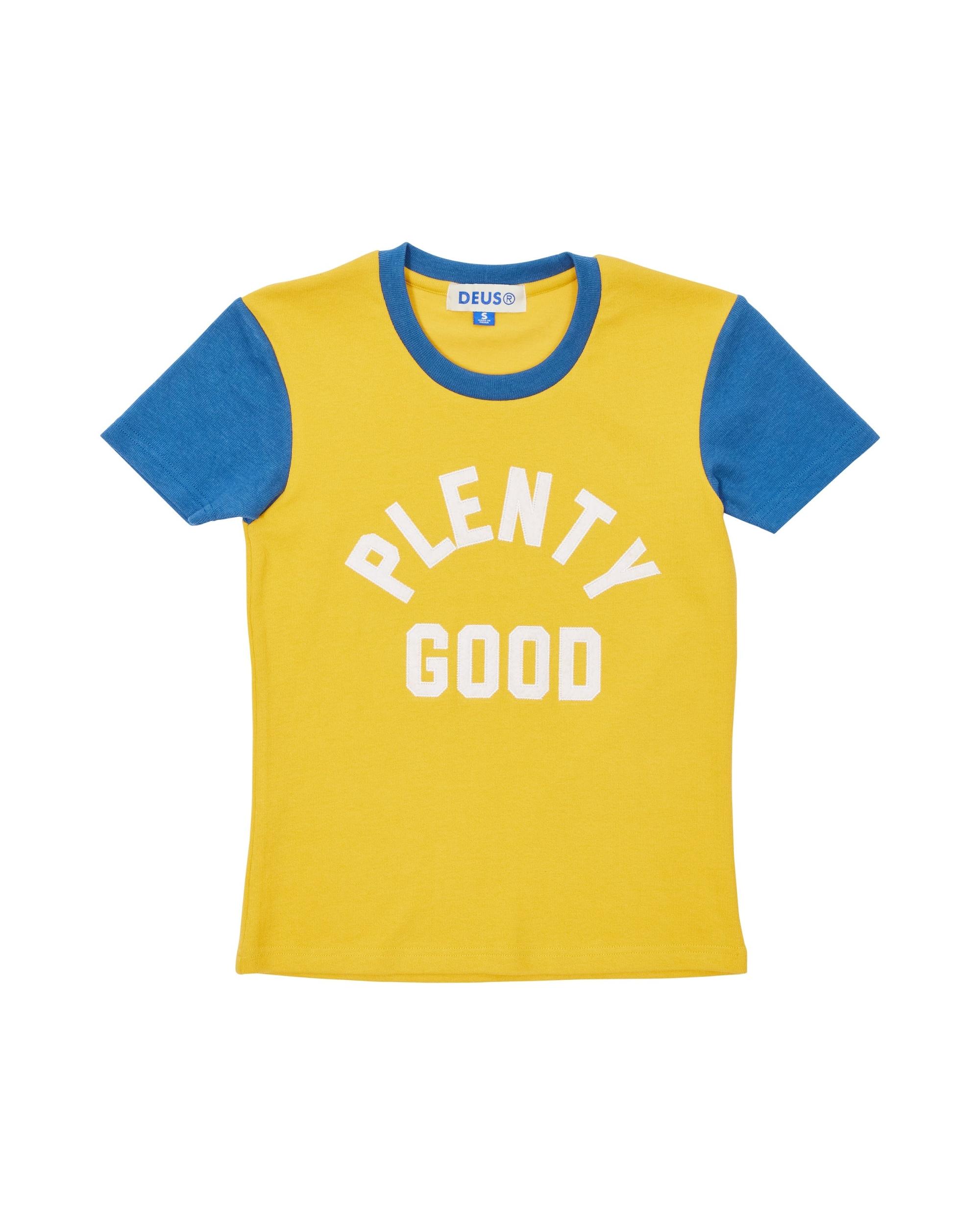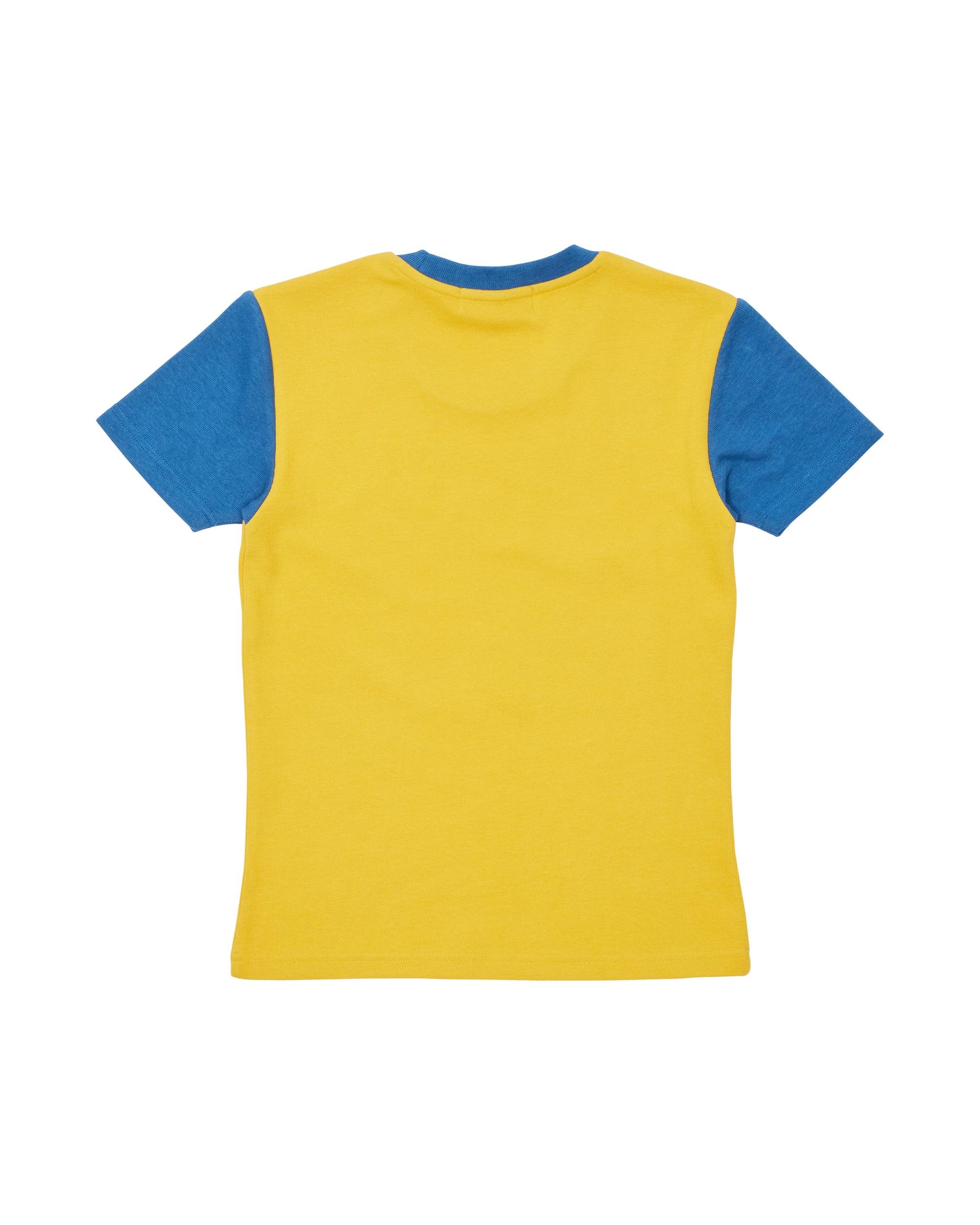 Regular Fit Short Sleeve Tee With Contrast Colour Sleeves And Neck Rib, Felt Applique Art At Chest, In A Polyester, Cotton Viscose And Elastane Mix Rib Fabrication With A Heavy Enzyme Stone Wash