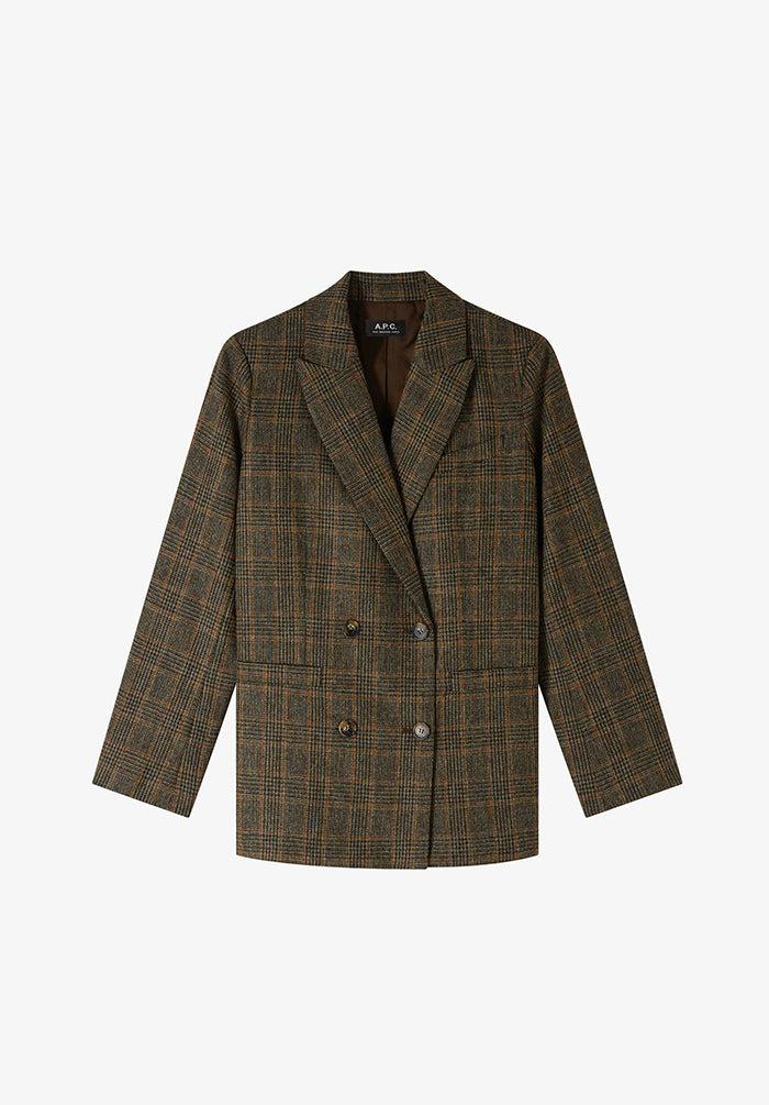A.P.C. Women's jacket.- Heavyweight structured material. - Straight cut. - Notch collar. - Double-breasted closure with faux horn buttons. - One pocket over the heart and two on the sides. - Jacquard lining. - Shoulder pads. - Felt undercollar.