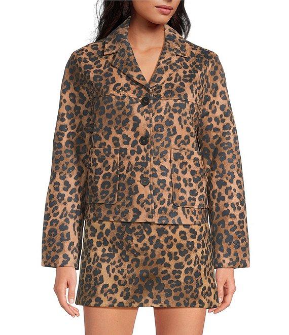 Lucy Paris Barren Leopard Print V-Neck Long Sleeve Faux Suede Jacket