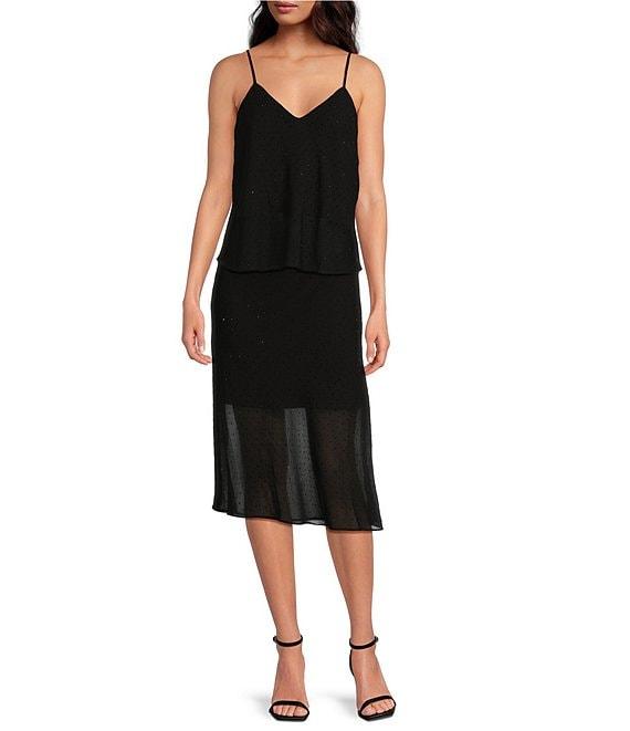 Lucy Paris Carlin Chiffon Rhinestone V Neck Sleeveless Tank Top
