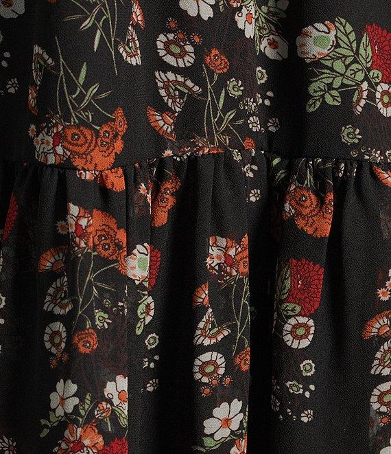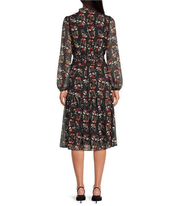 Lucy Paris Dallas Floral V-Neck Long Sleeve Chiffon Midi Dress