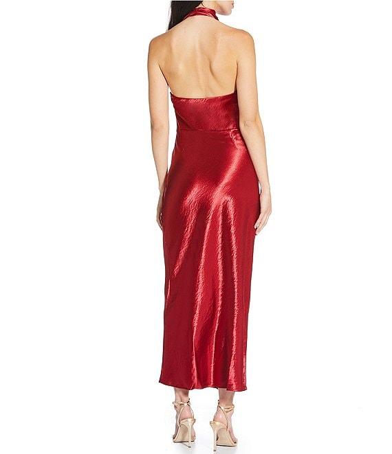 Lucy Paris Debbie Satin Halter Neck Sleeveless Chemise Midi Dress
