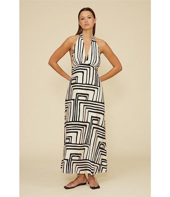 Lucy Paris Delaney Geometric Halter Neck Sleeveless Maxi Dress