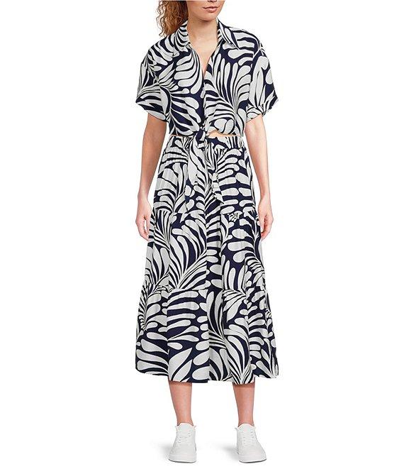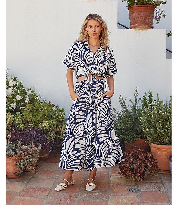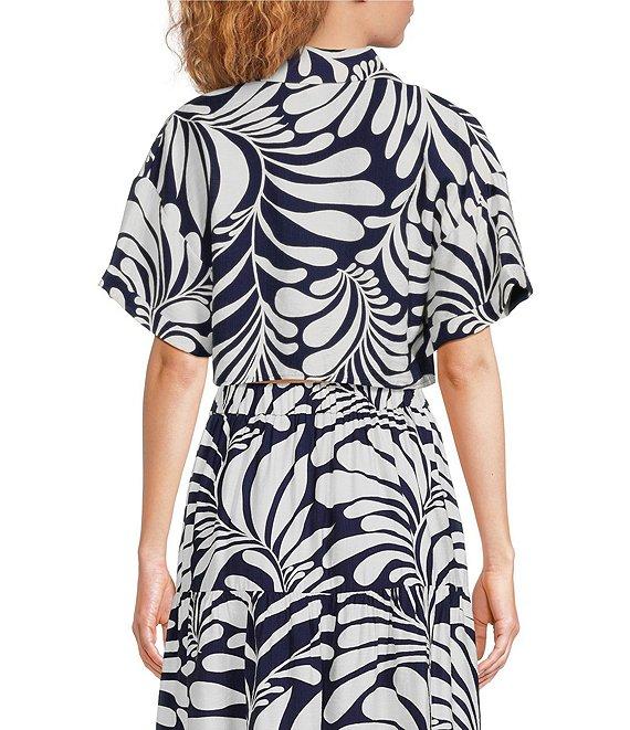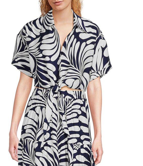 Lucy Paris Emily Woven Printed Collared V-Neck Short Sleeve Tie Front Coordinating Top
