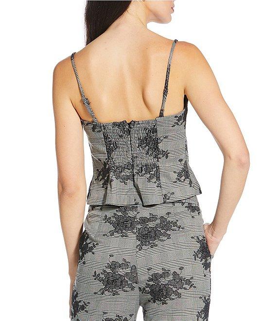 From Lucy Paris, this top features: Plaid print Square neckline Sleeveless Adjustable spaghetti straps Zip closure Floral applique detail Approx. 13" length Polyester/rayon/spandex; lining: polyester/spandex Machine wash Imported.