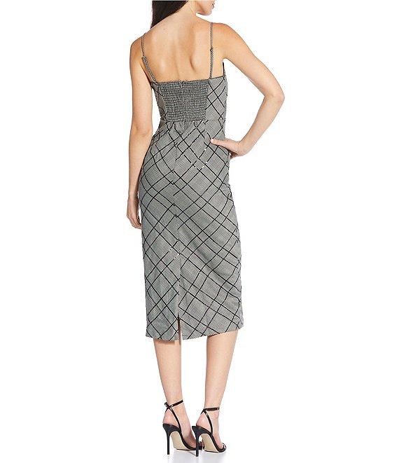 Lucy Paris Klein Shine Plaid Square Neck Sleeveless Chemise Midi Dress