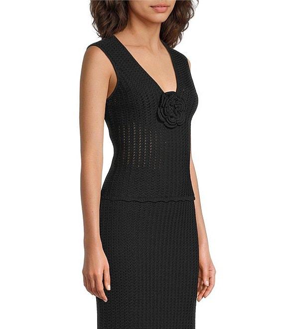 Lucy Paris Nara Crochet Knit 3D Rosette V-Neck Sleeveless Coordinating Crop Tank