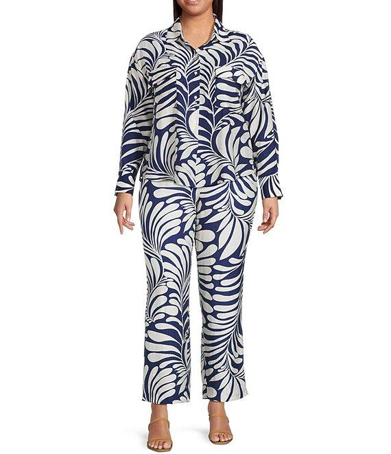 Lucy Paris Plus Carlen Coordinating Printed Long-Sleeve Cargo-Pocket Blouse