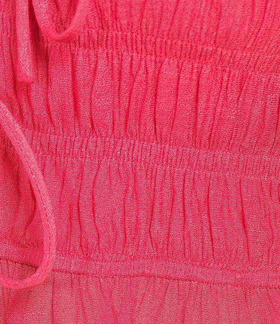 From Lucy Paris, this blouse features: V-neckline Short sleeves Smocked and ruffled details Tie front bow details Pullover styling Rayon/polyester Machine wash cold/tumble dry low Imported.