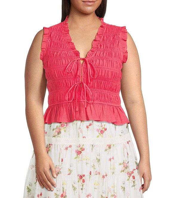 Lucy Paris Plus Livia Smocked Ruffle Short Sleeve Blouse