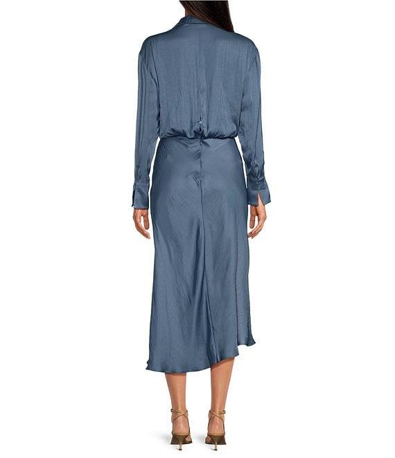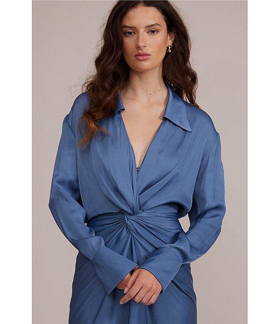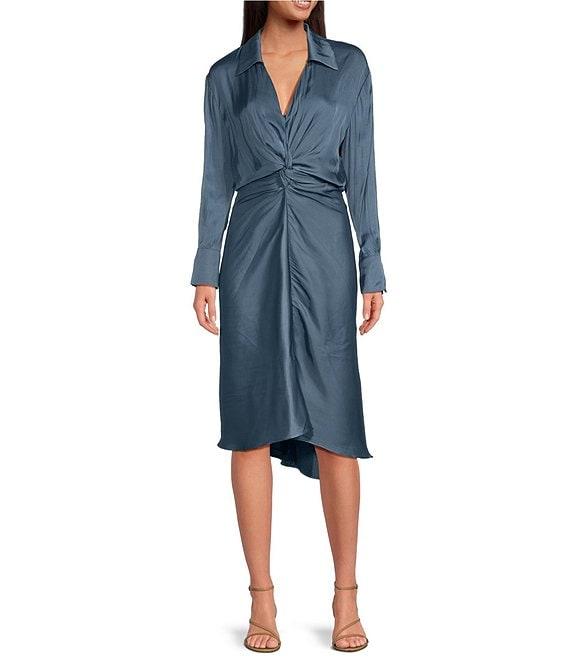From Lucy Paris, this dress features:V-neckline with collarLong sleevesTwist front detailBack zipper closureApprox. 48" lengthPolyesterMachine wash/tumble dry Imported.