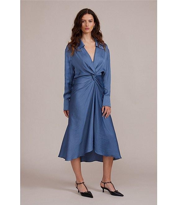 Lucy Paris Ruche Paige V Neck Long Sleeve Twist Front Midi Dress