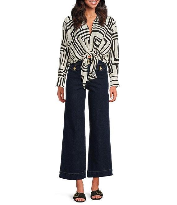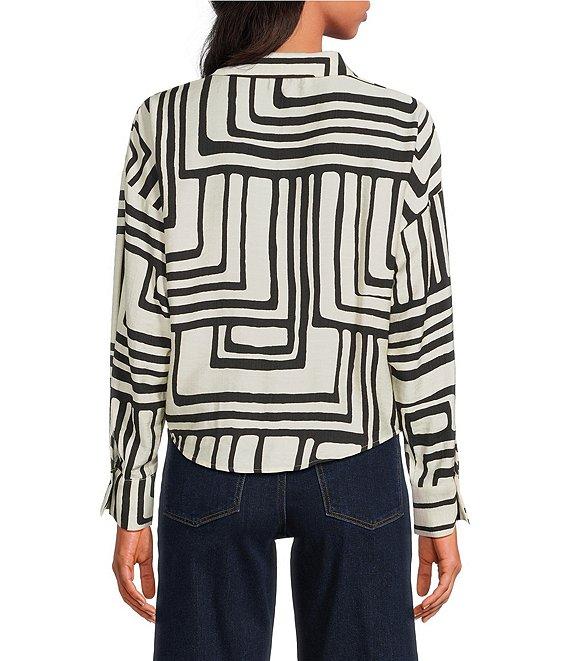 Lucy Paris Rue Geometric Print Collared V-Neck Tie Front Button Front Coordinating Top