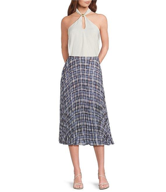 Lucy Paris Talia Plaid Print Pleated Midi Skirt
