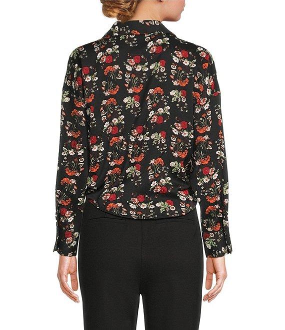 From Lucy Paris, this top features: Woven fabrication Floral print V-neckline Long sleeves Center button front closure Tie front detail Above waist length Approx. 22" length Polyester Machine wash/tumble dry Imported.