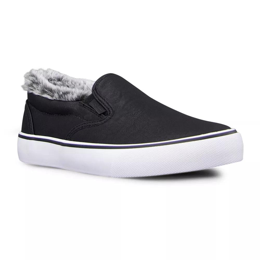 Featuring faux fur, these Clipper LX shoes from Lugz will become a wardrobe staple. Click this FOOTWEAR GUIDE to find the perfect fit and more! - https://www.kohls.com/feature/shoesizeguide.jsp. SHOE FEATURES: Padded collar, Faux fur lining, Vulcanized sole. SHOE CONSTRUCTION: Synthetic upper, Faux fur lining, Rubber outsole. SHOE DETAILS: Plain toe, Slip-on, Padded footbed,. WARNING: This product can expose you to chemicals including Styrene, which is known to the State of California to cause cancer. For more information go to www.P65Warnings.ca.gov - https://www.p65warnings.ca.gov/. Size: 7. Color: Black White. Gender: female. Age Group: adult. Material: FAUX LEATHER.