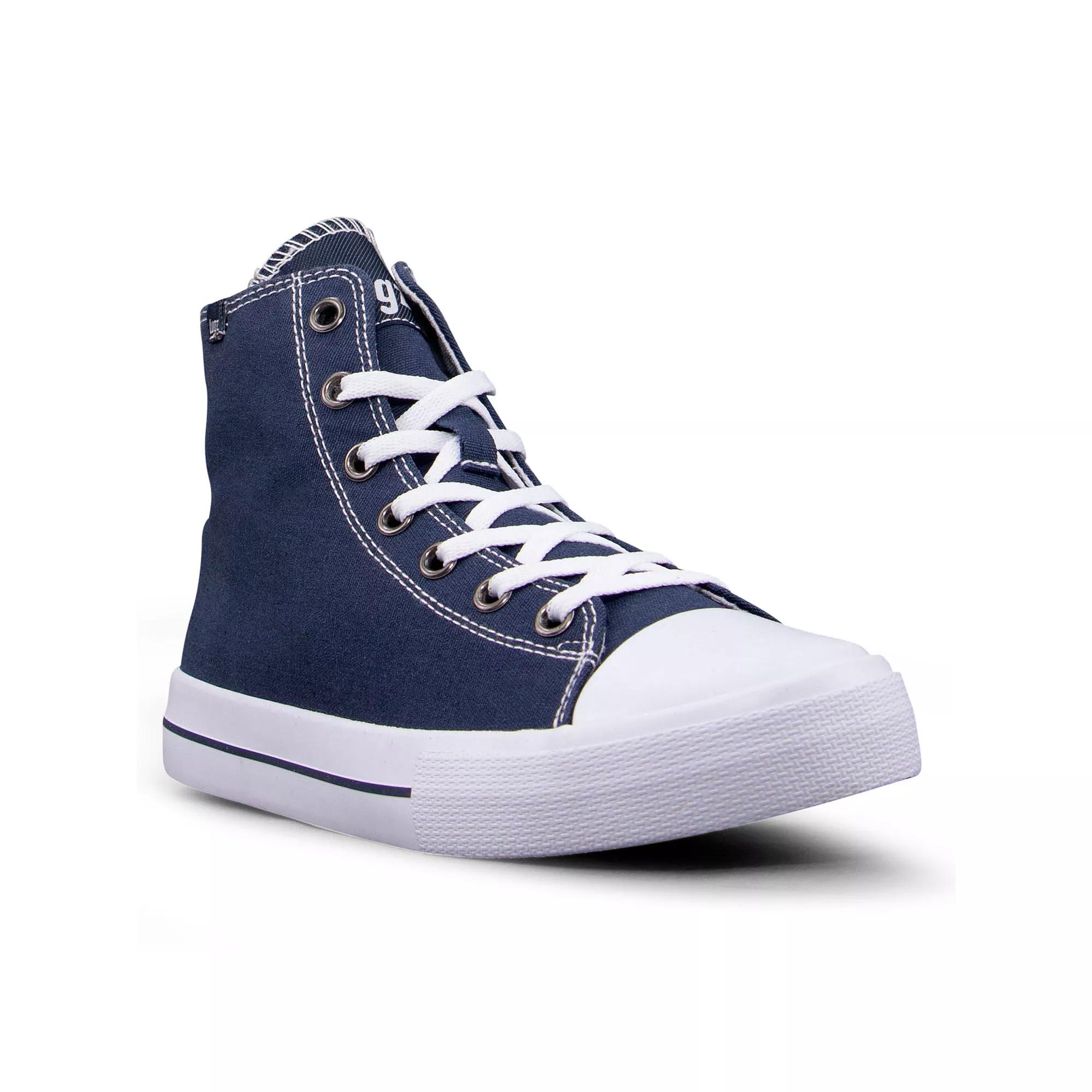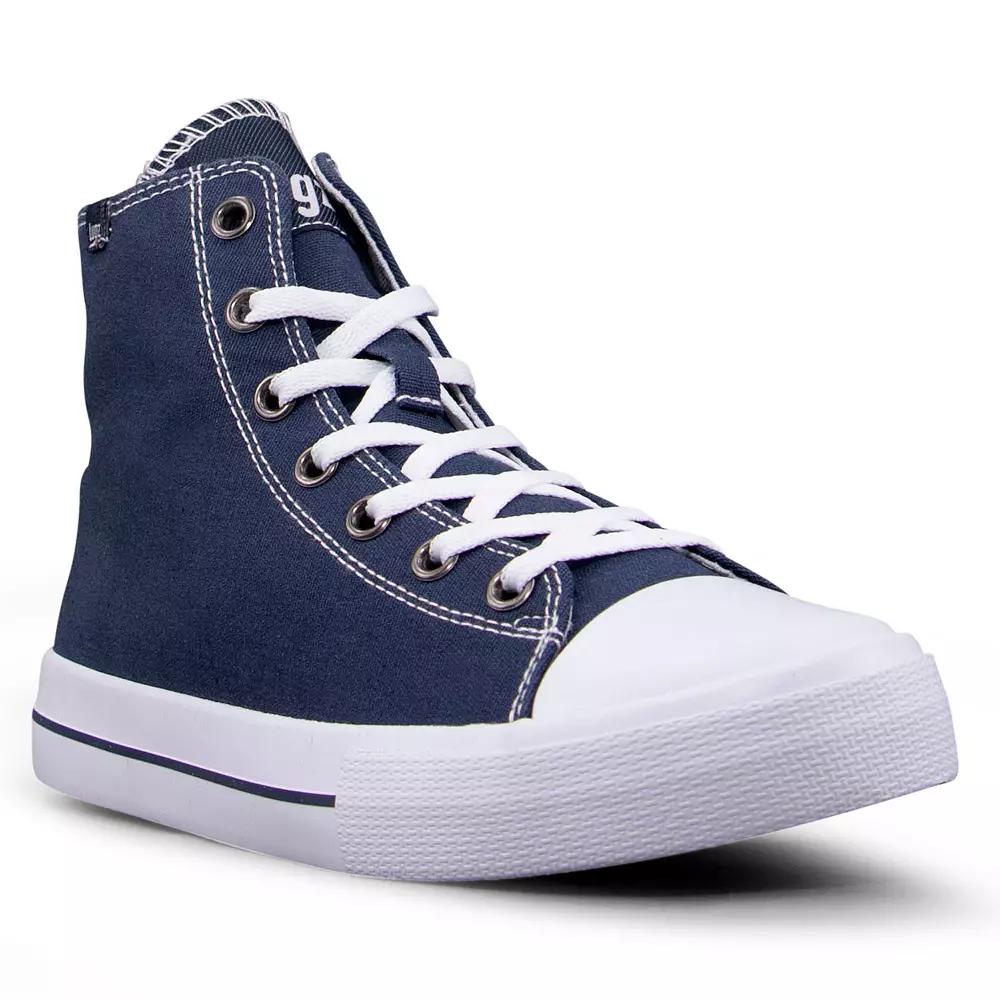Step up your casual style with these Lugz Stagger women's high top shoes. Click this FOOTWEAR GUIDE to find the perfect fit and more! - https://www.kohls.com/feature/shoesizeguide.jsp. SHOE FEATURES: Lace-up closure for an adjustable, secure fit, Breathable lining and padded collar for a comfortable fit, Vulcanized outsole. SHOE CONSTRUCTION: Canvas upper, Manmade lining, Foam midsole, Rubber outsole. SHOE DETAILS: Round toe, Lace-up closure, Foam footbed,. Warning: This product can expose you to chemicals including Styrene, which is known to the State of California to cause cancer. For more information go to www.P65Warnings.ca.gov - https://www.p65warnings.ca.gov/. Size: 6.5. Color: Navy White. Gender: female. Age Group: adult.