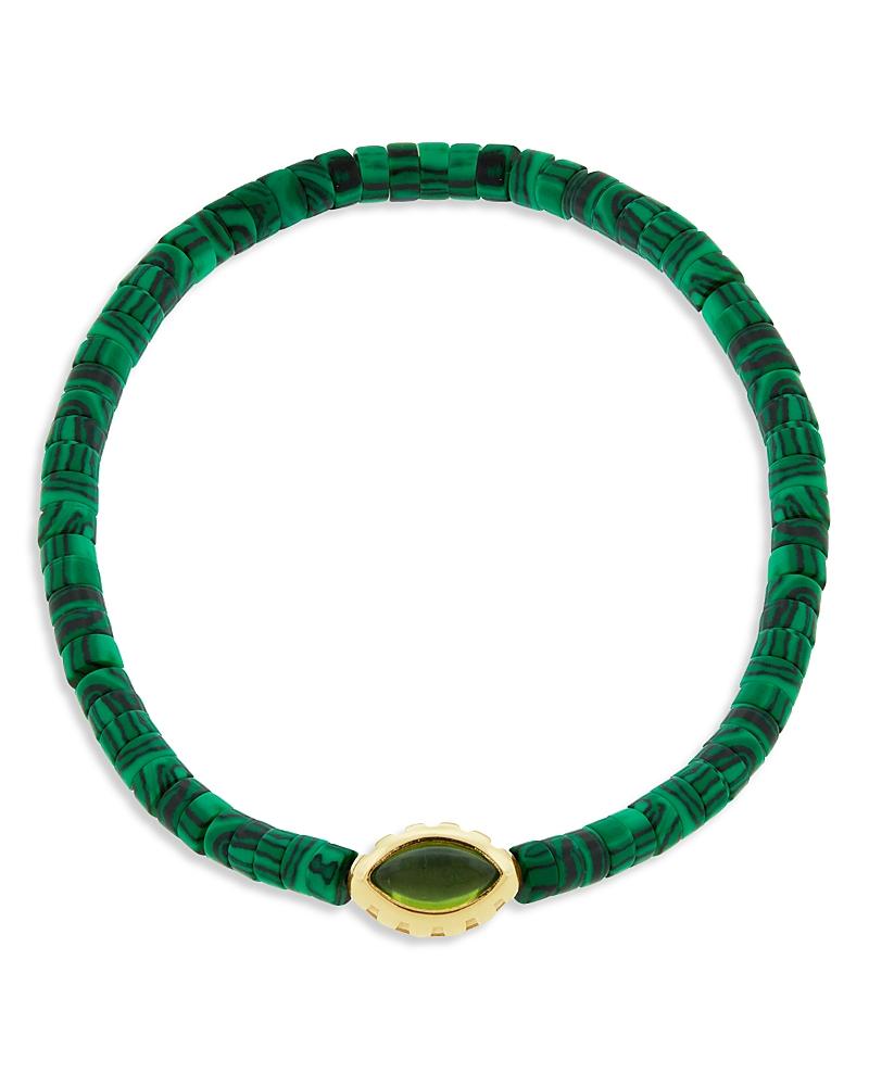 Luis Morais Mens 14K Yellow Gold Peridot Eye of the Idol Malachite Beaded Bracelet