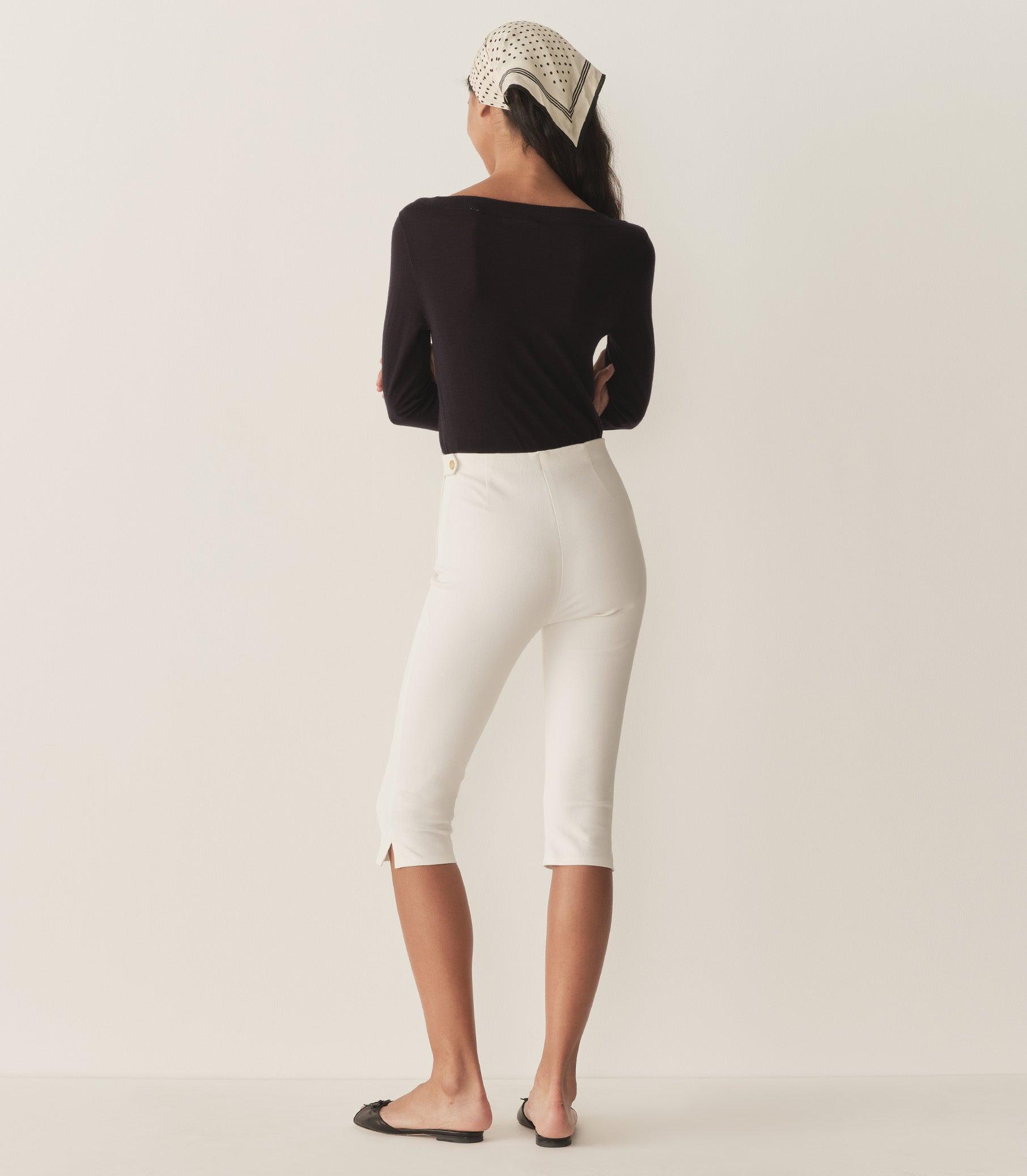 For Spring, we’re excited to introduce a capri iteration of our beloved Lula Pant. Tailored in a stretchy cotton blend that holds its shape, the Lula Capri features an ultra-high rise, a slim fit, and knee-length hem with playful split details, plus an invisible side zipper with a single horn button closure.