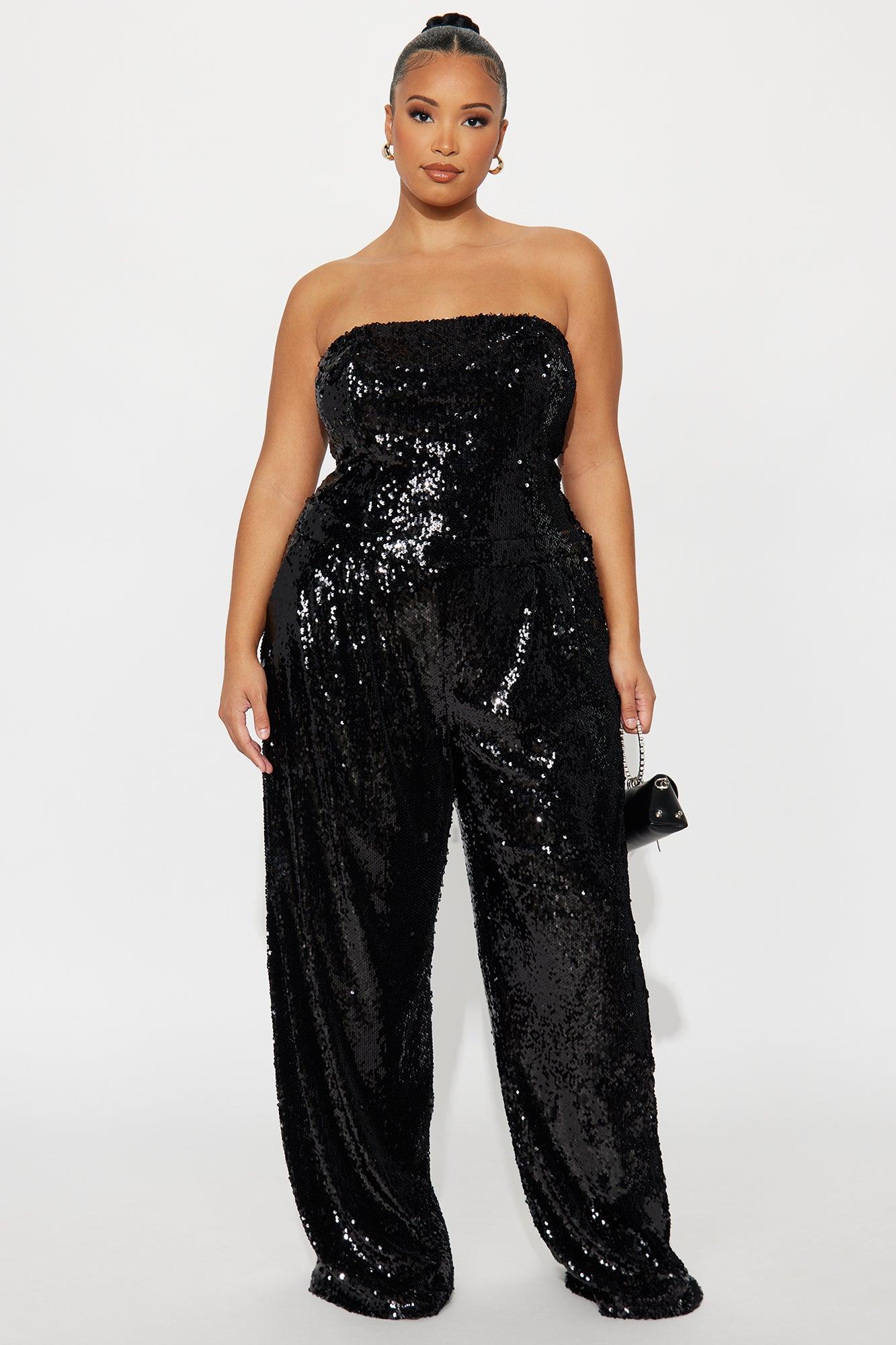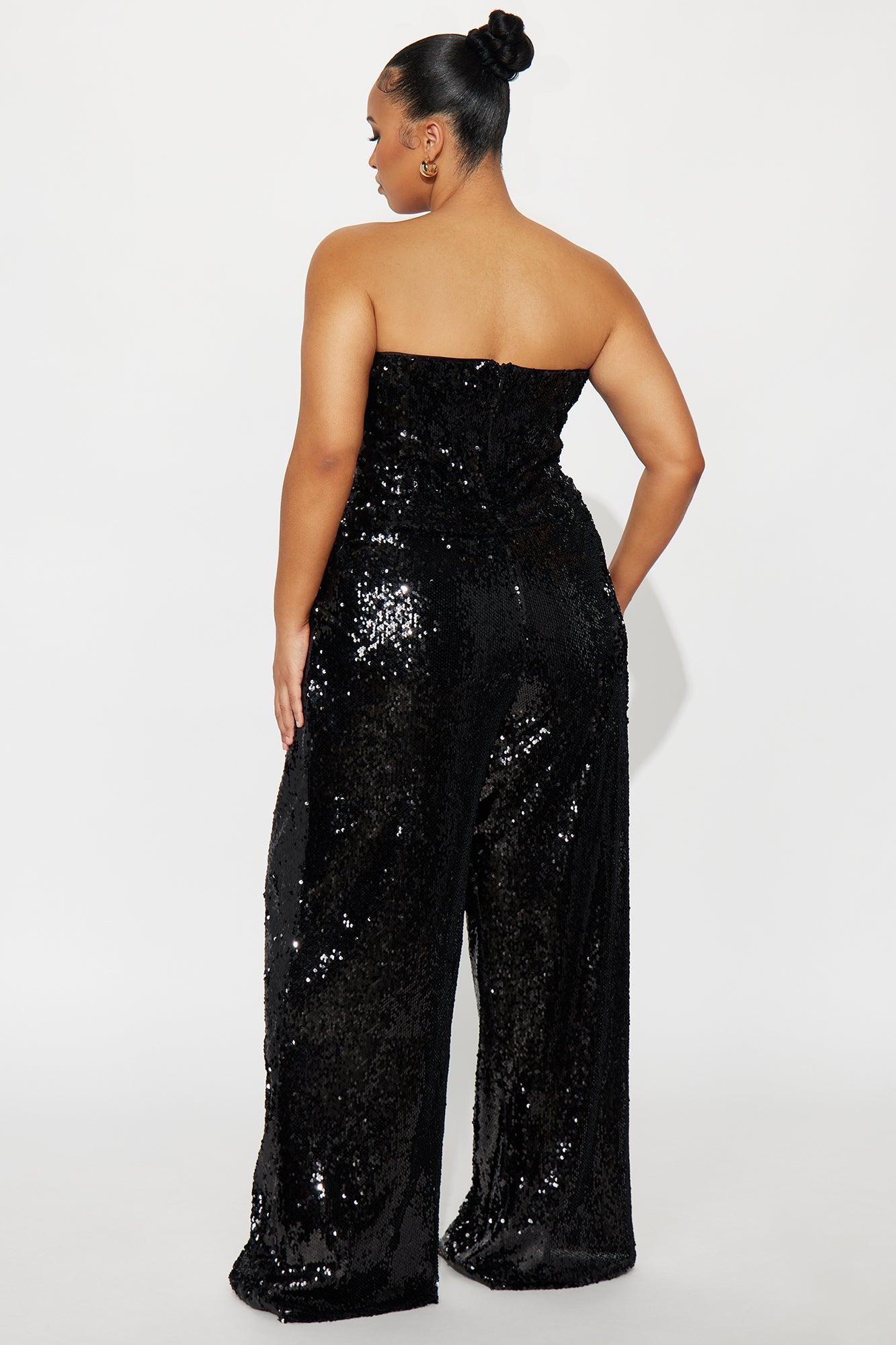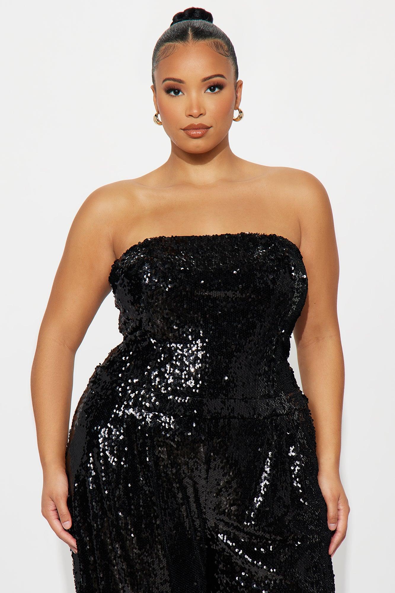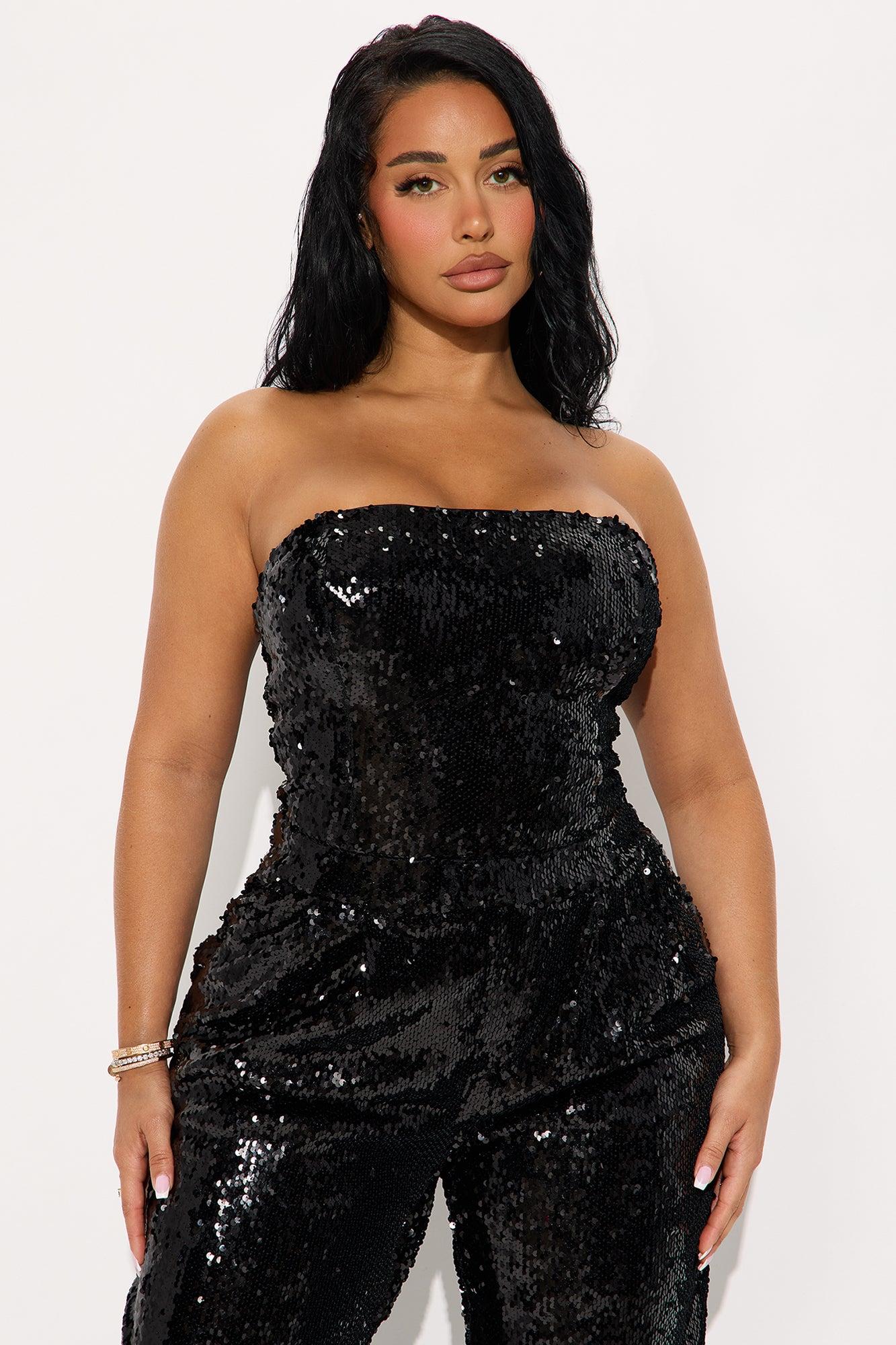 Lulu Sequin Strapless Wide Leg Jumpsuit - Black Female