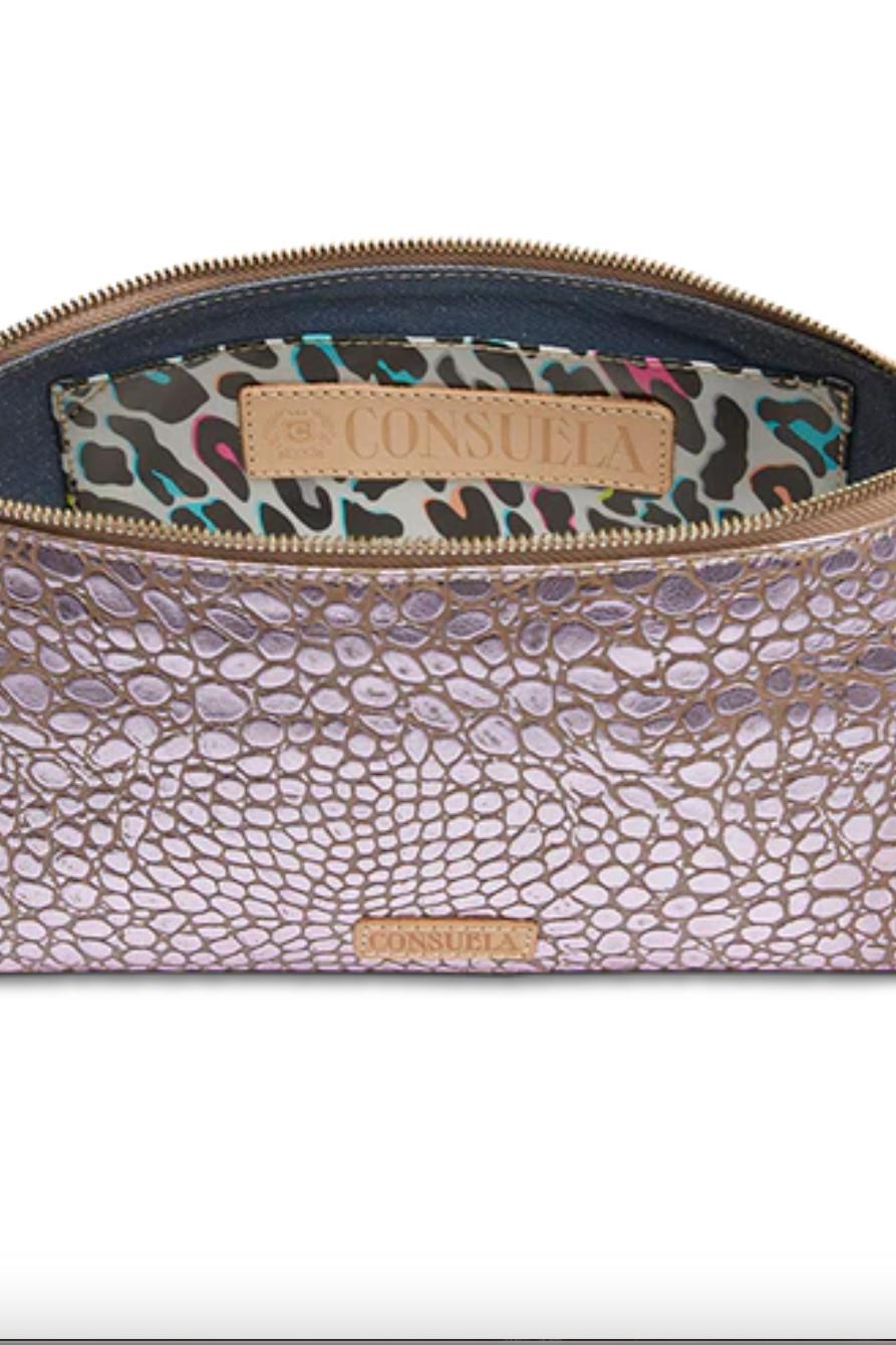 Interior slide pocket, zipper pocket, and credit card slots