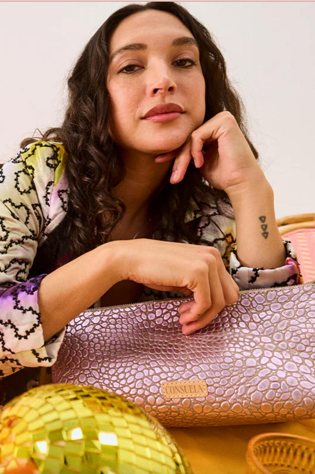 Our Tool Bag is ideal for organizing cosmetics, pencils, or journaling supplies inside a larger tote. Carry this leather cosmetic case by the woven side handle or under your arm as a clutch to keep the essentials within reach.