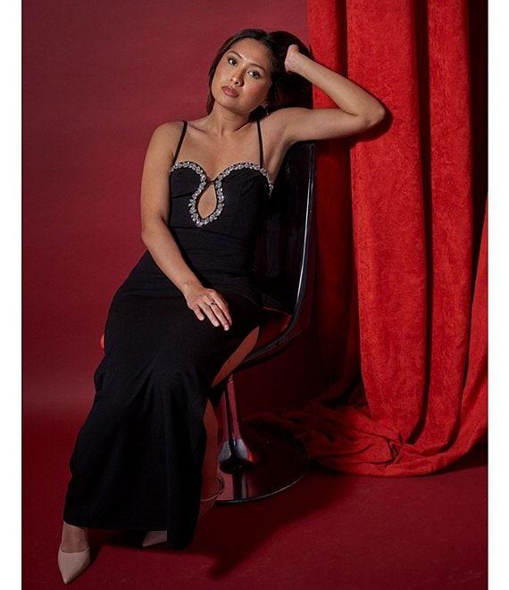 Lulus Crepe Jasmine Crystal Deep Cutout Crepe Maxi Dress