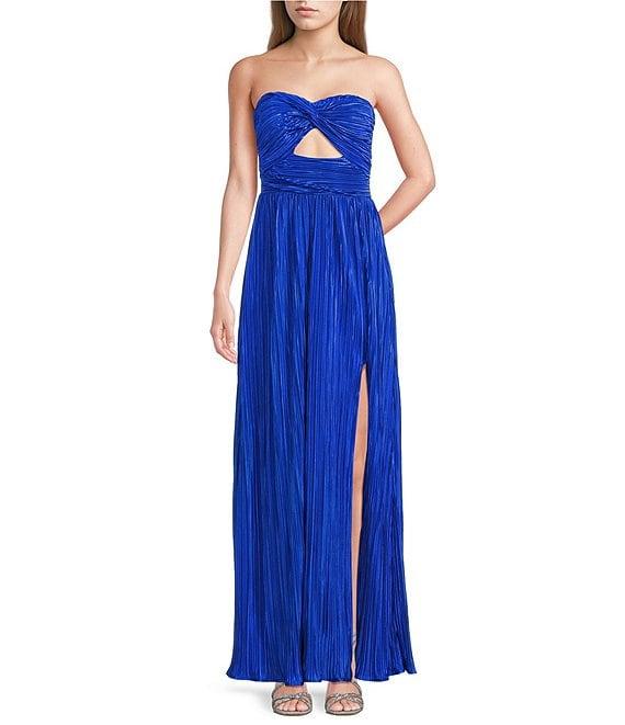 Lulus Majestic Strapless Cut-out Satin Plisse Long Dress