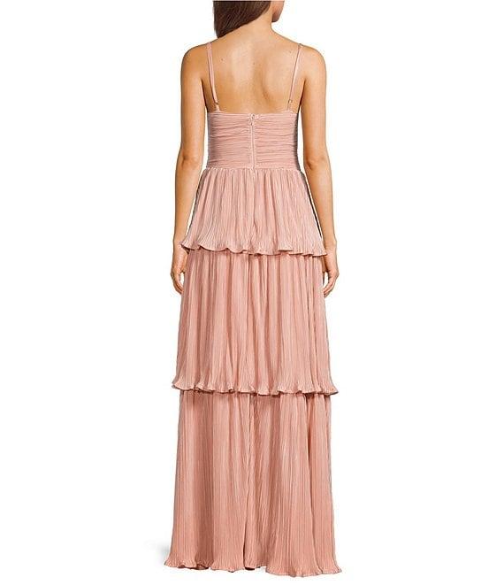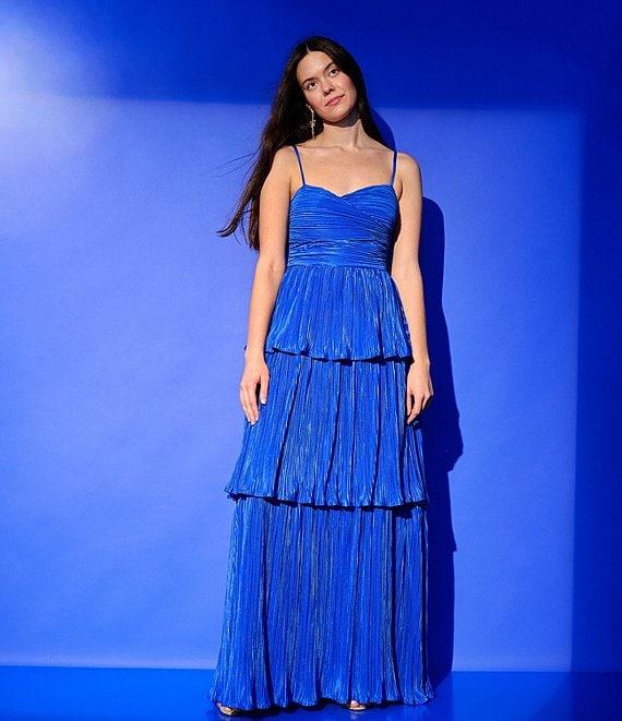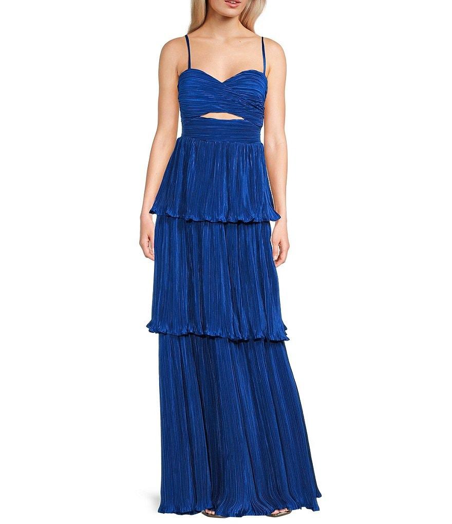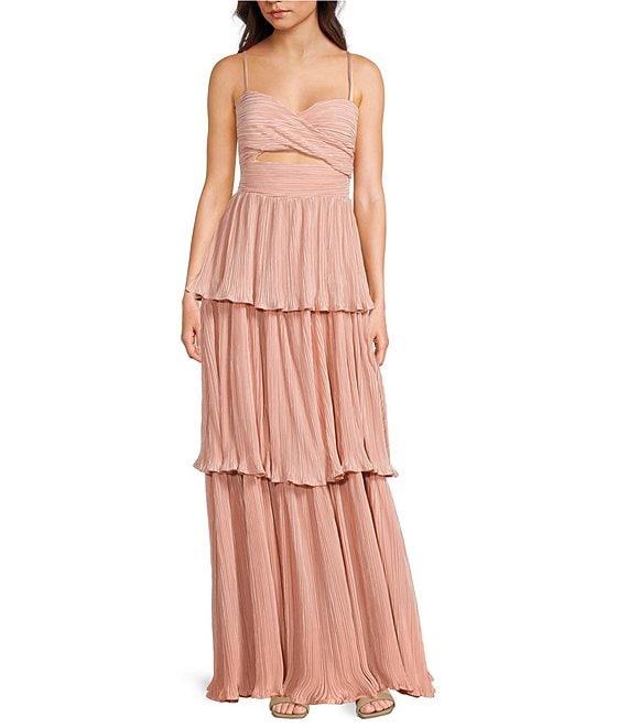 Lulus Plisse Fortuna Tiered Sweetheart Neckline Cut Out Long Dress