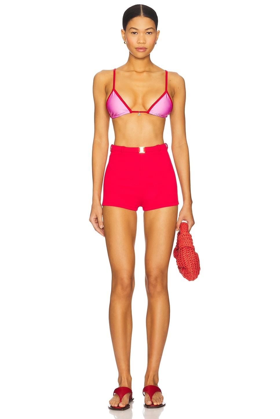 80% nylon, 20% spandex. Hand wash. Unpadded cups. Back tie closure. Adjustable shoulder straps. Lightweight swimwear fabric. Item not sold as a set. Made in Indonesia. Revolve Style No. FAER-WX14. Manufacturer Style No. KT44809.